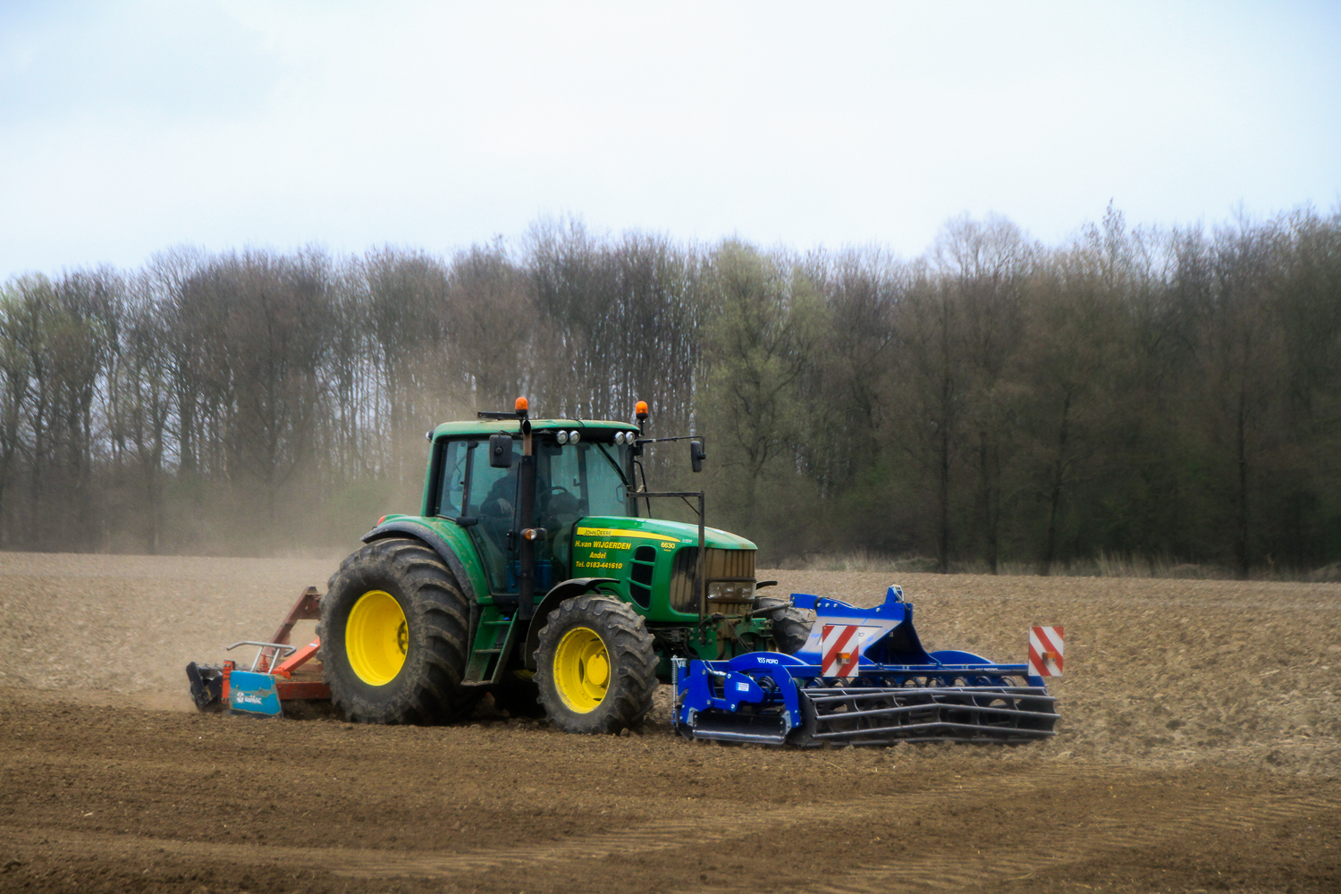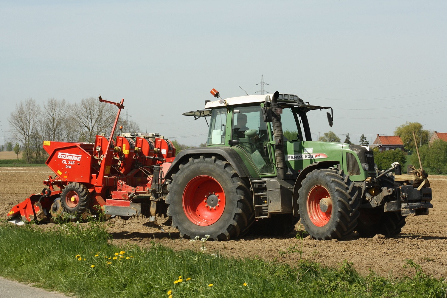 Ook in Wallonie begint men aan de plant en zaaiwerken. Deze landbouwer die met een Fendt Vario 820 en Grimme GL 34F plant is er ook al vroeg bij. (Foto Maarten Martens)