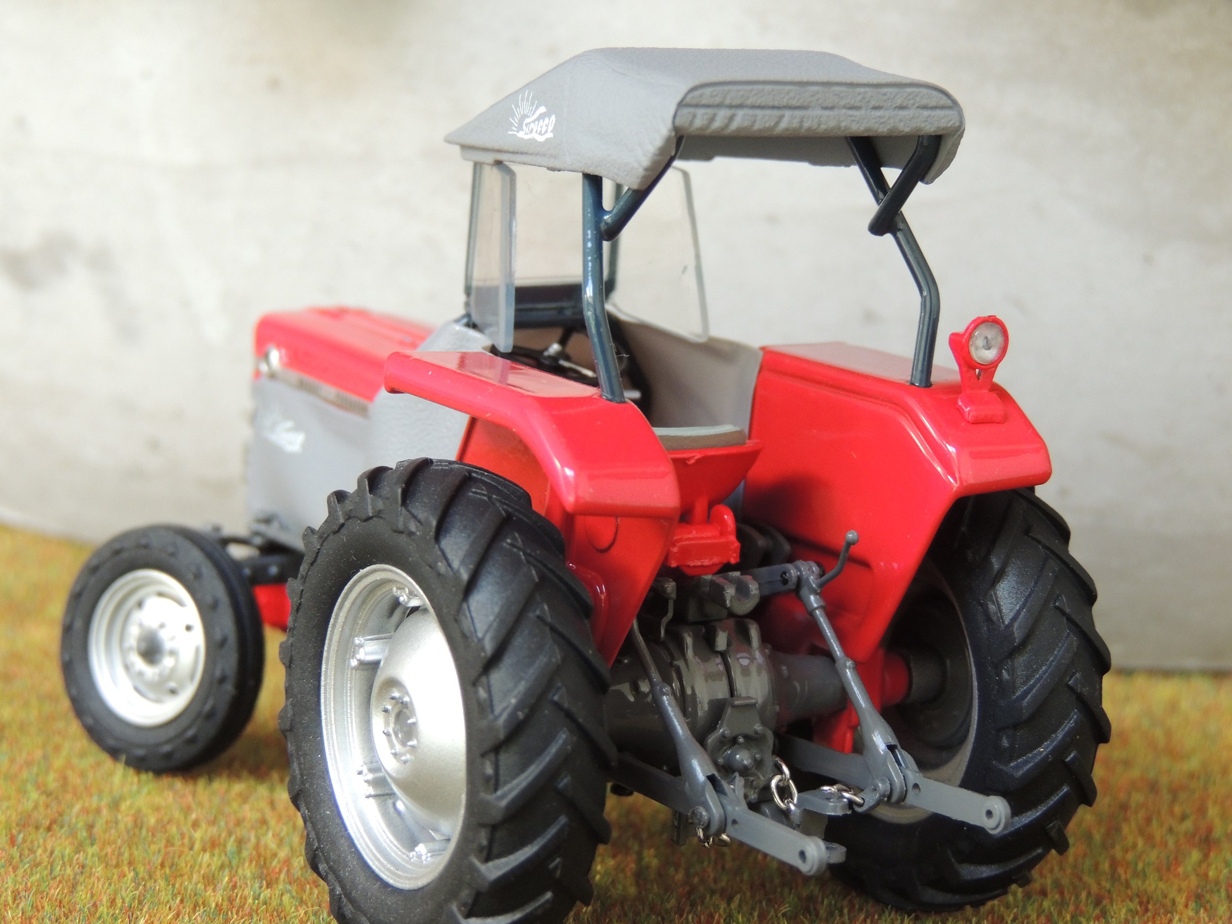 De cabine was voorzien van een voorruit van 42 cm breed en 36 cm hoog van Sécurit-veiligheidsglas die in een rubberen sponning was gevat, en twee tochtruitjes van dik Perspex-plastic. Verder bevonden zich aan de zijkant nog twee stukken helder plastic zijzeilen. De cabine was aan de achterkant open en onder bepaalde omstandigheden, zoals bij het transport over de weg tijdens regen, werd het ontbreken van een gesloten achterwand wel eens als een gemis ervaren. Door de hoes werd de motor goed op temperatuur gehouden. De warmte van de motor werd langs de trekkerchauffeur geleid. Als de kap en de plastic zijruiten waren gemonteerd, werd soms enige hinder ondervonden van oliedamp, doordat de ventilatiemogelijkheden door de tochtraampjes namelijk beperkt was. Dit hing natuurlijk samen met goed onderhoud van de motor. Bij droog weer werd meestal alleen de hoes met de voorruit en de tochtraampjes gebruikt. De bestuurder zat dan warm en beschut.