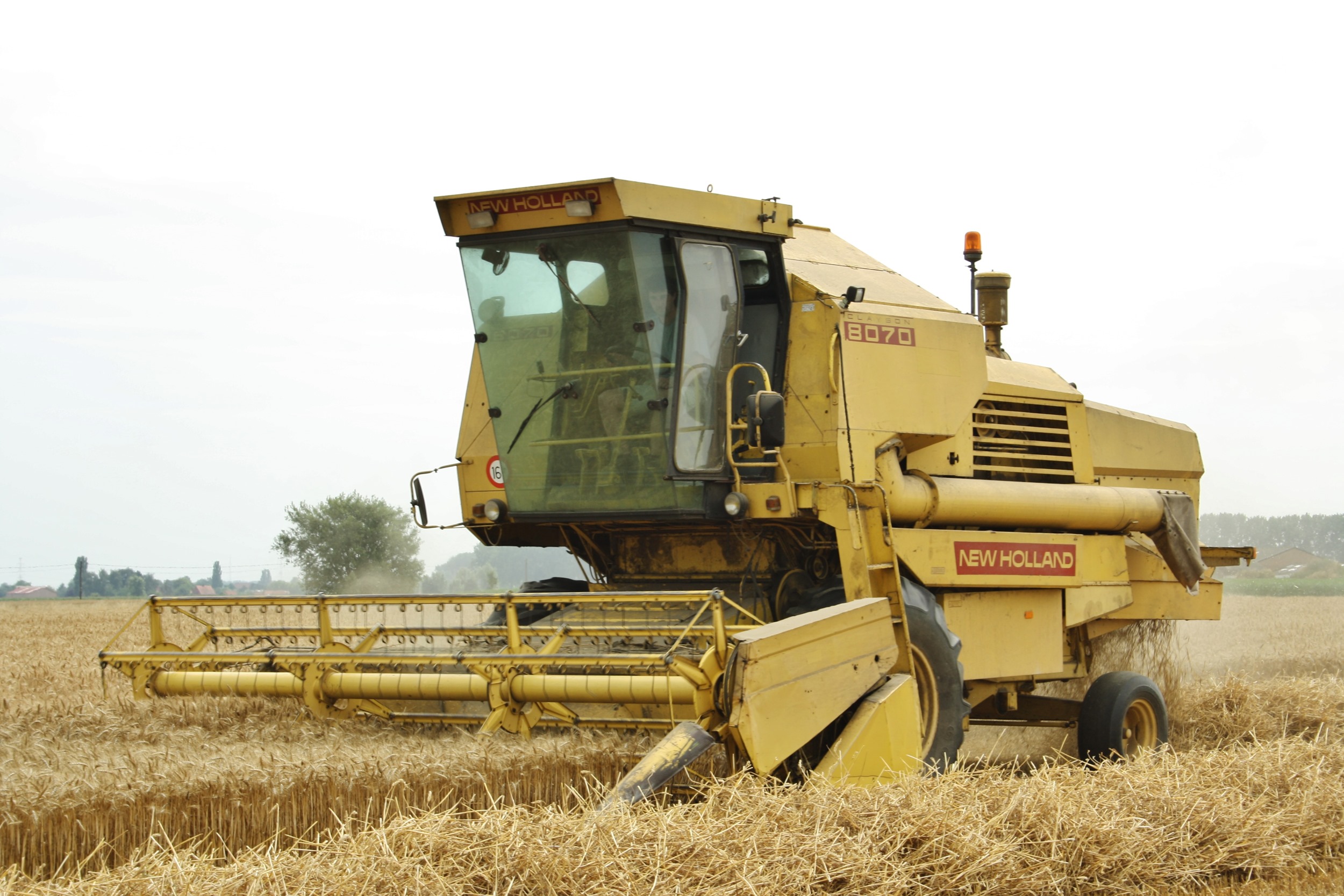 De legendarische New Holland Clayson 8070 bezig in de gerst. (Foto Maarten Martens)