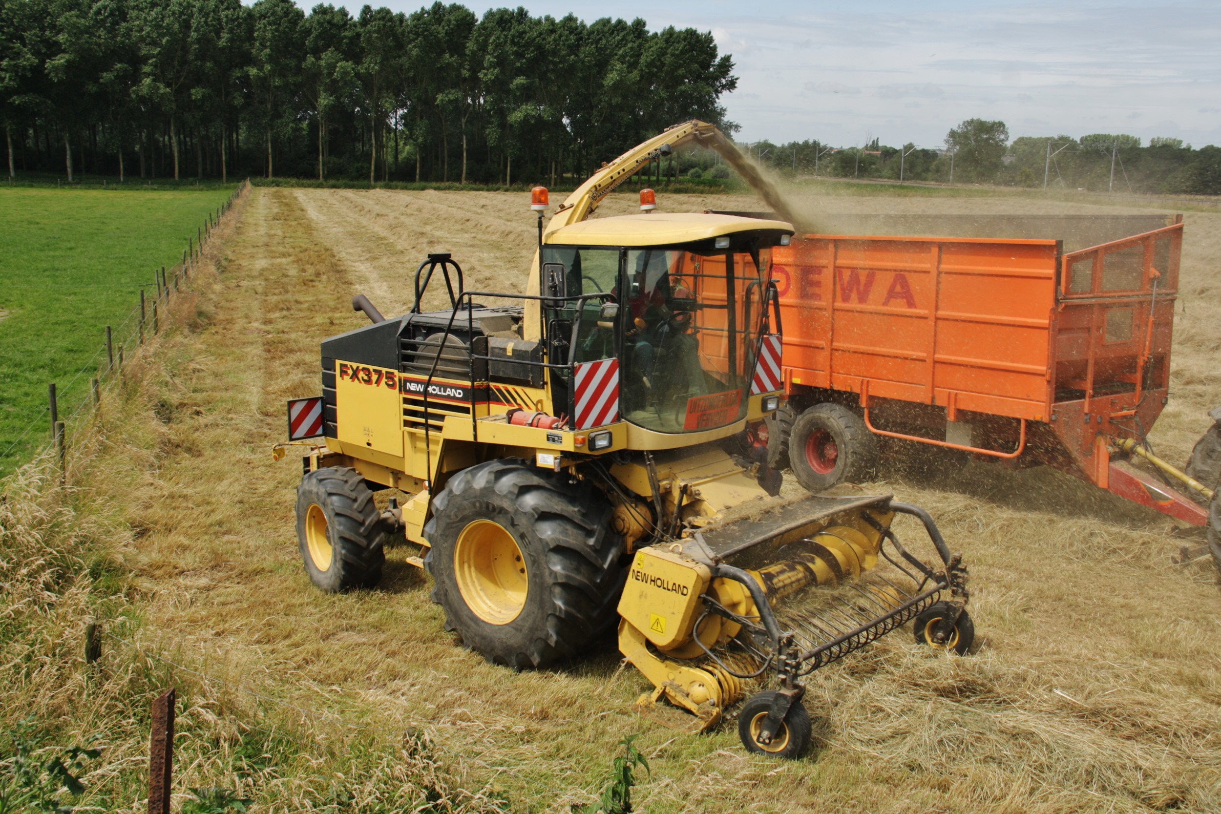 Landbouwer Vandeputte uit Nevele, gras hakselen met New Holland FX 375. (Foto Maarten Martens)