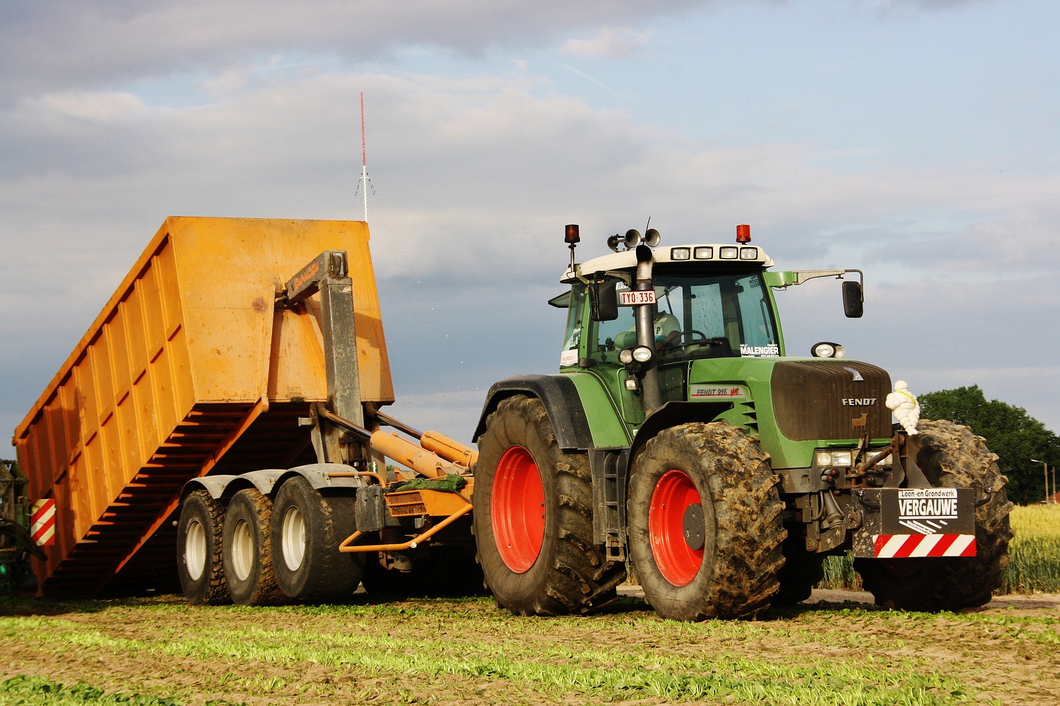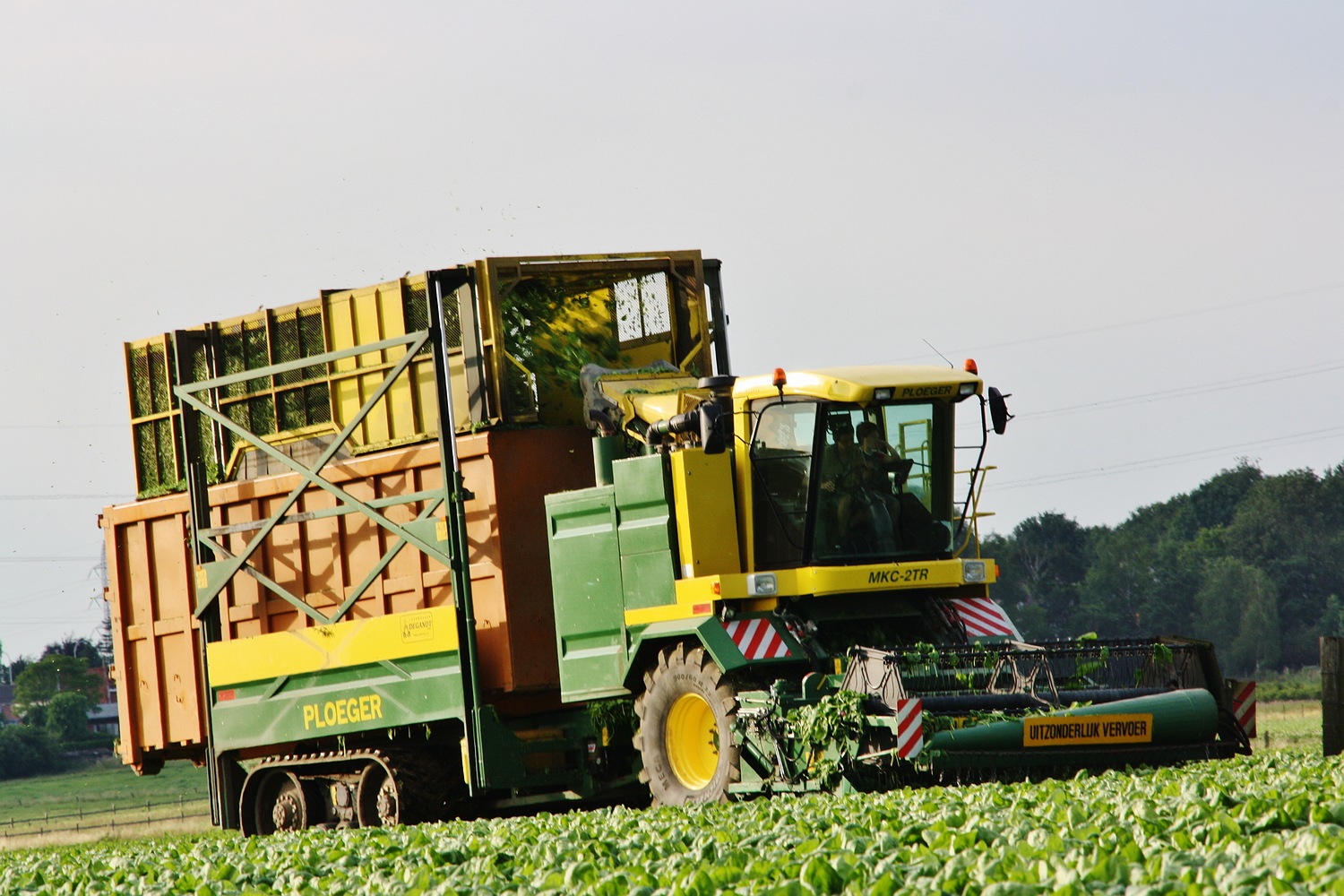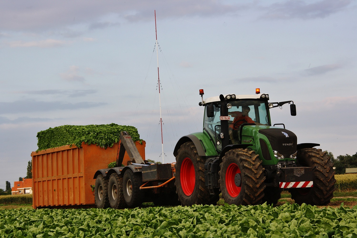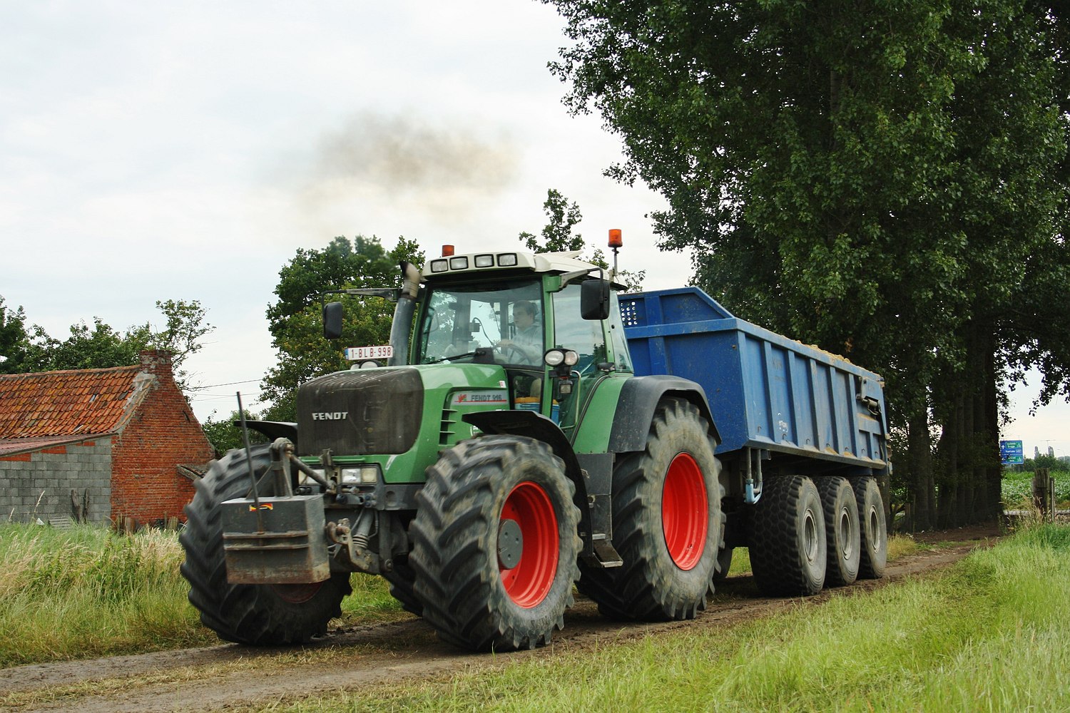 De spinazieoogst gaat dezer tijd goed vooruit , vorig jaar zagen we loonbedrijf Vergauwe uit Westrozebeke hun Fendt 916 en 922 beide met een containerhaak het transport van de geoogste spinazie op zich nemen. (Foto Davy Tandt)
