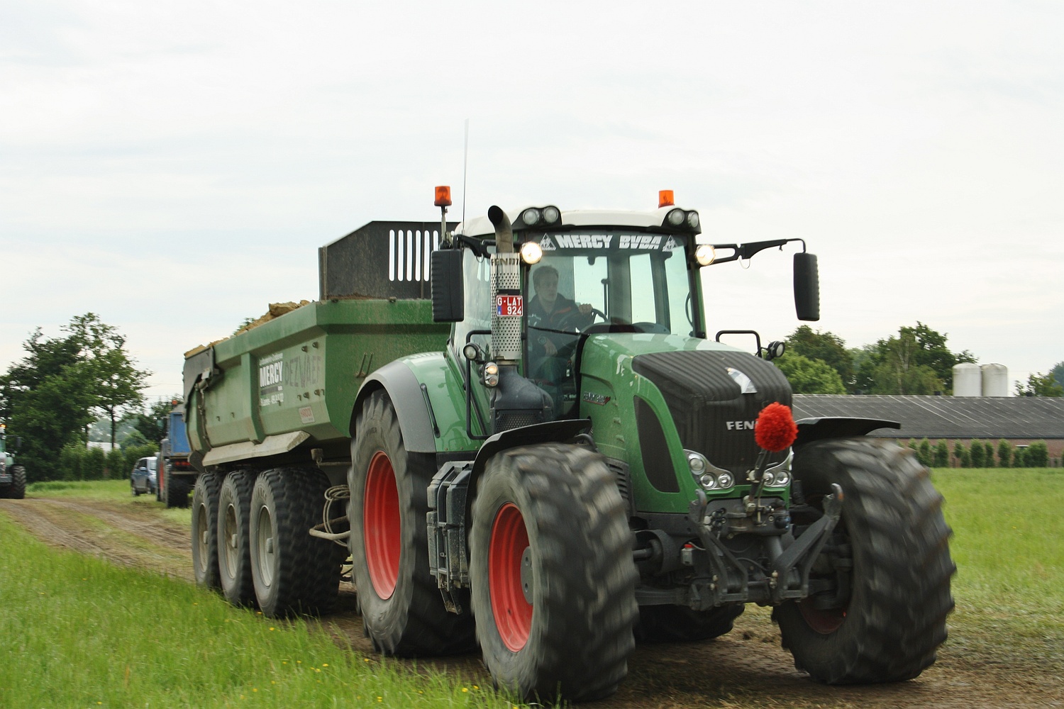 Nog één die grond afvoerde in Zomergem was deze combinatie van Mercy uit Sint-Laureins. We zien hier een Fendt Vario 924 met een Dezwaef 3as dumper, die vooral bekend zijn van de aaltonnen natuurlijk. (Foto Maarten Martens)