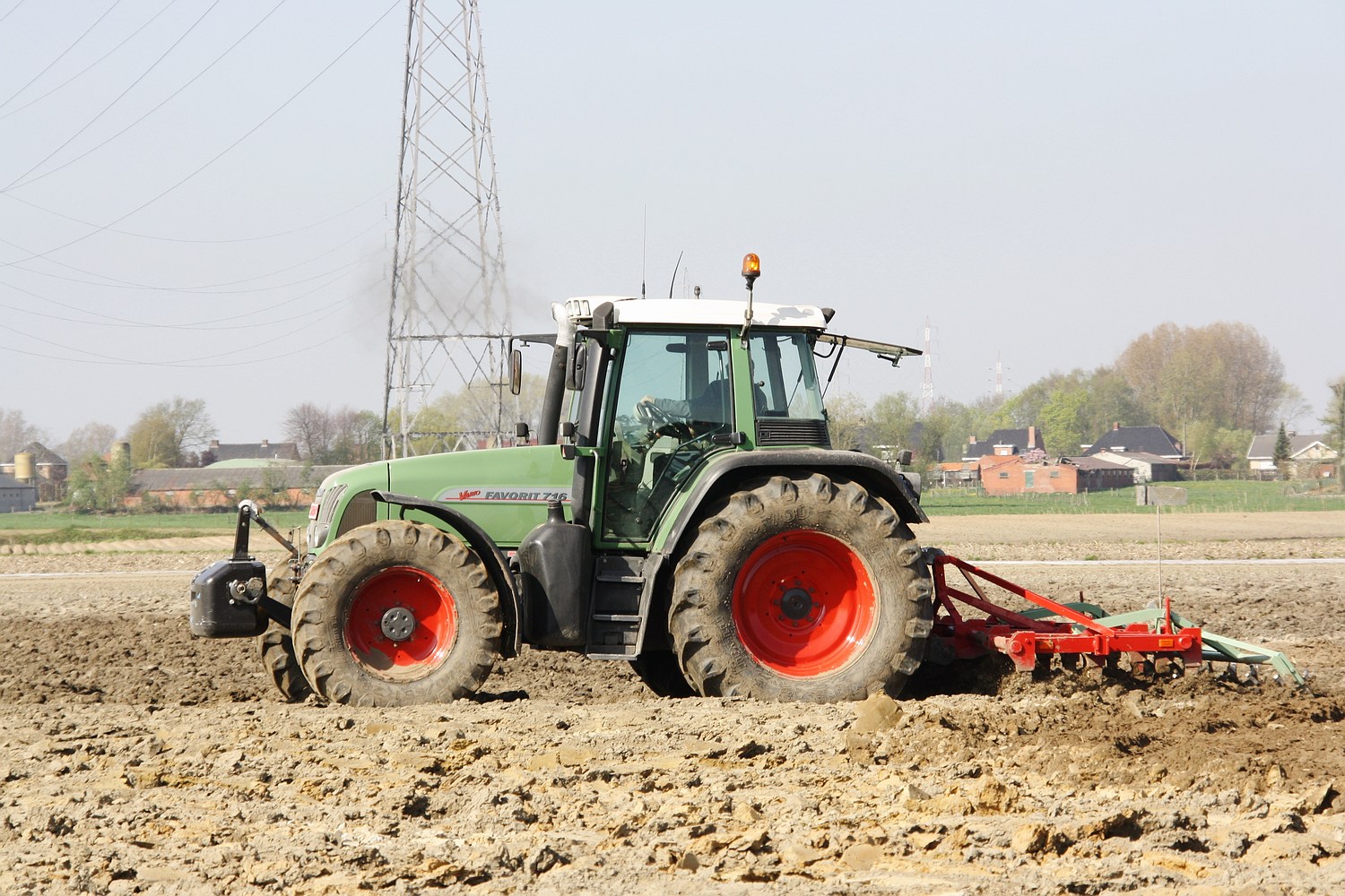 Onder een lente zonnetje was het ideaal om de akkers eens open te trekken, ook oud-loonwerker Francis Vanhecke uit Ardooie zien we aan het werk op zijn akkers met zijn Fendt Favorit 716 en Steeno cultivator. (Foto Davy Tandt)