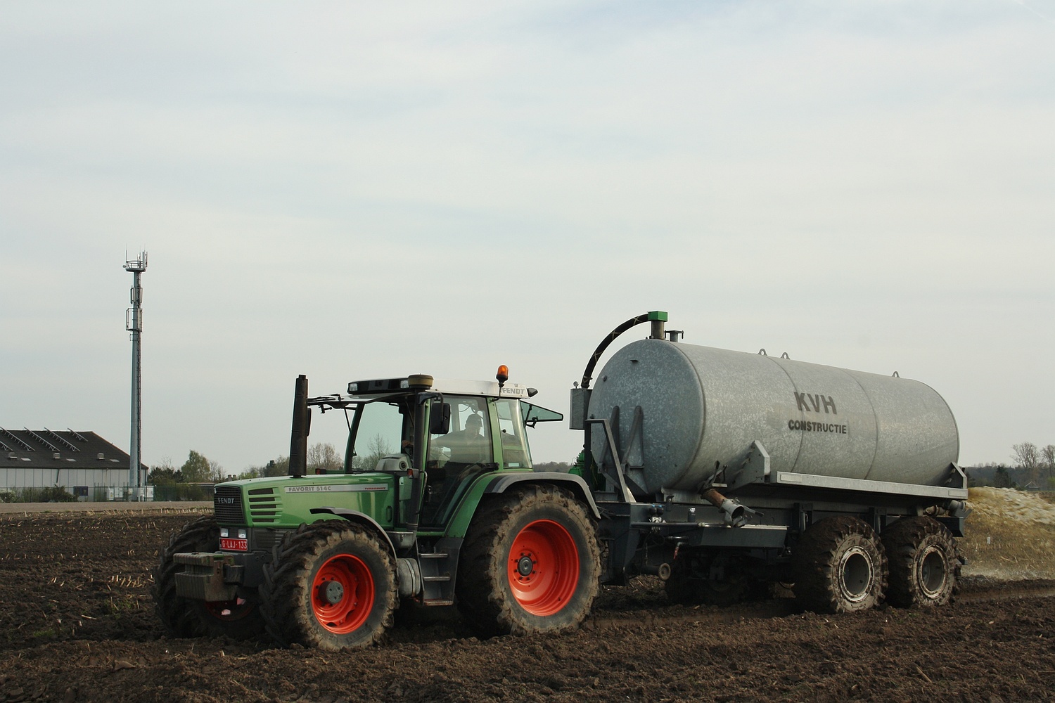 Naast de grote 3asser was er ook nog een tandem aalton aan het werk. Een Fendt Favorit 514C mag met een KVH aalton op pad. (Foto Maarten Martens)