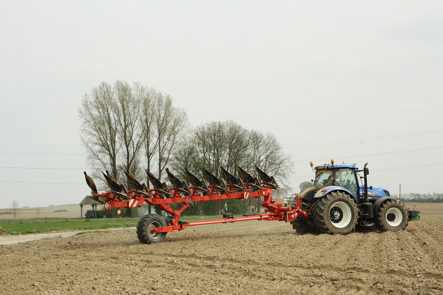 Niet alleen loonwerkers hebben groot materiaal, maar deze Waalse landbouwer ploeg hier echt in stijl! Met zijn New Holland T 7.270 en Grégoire-Besson 9 scharige ploeg wordt een groot stuk land van heel wat hectares bewerkt. (Foto Maarten Martens)