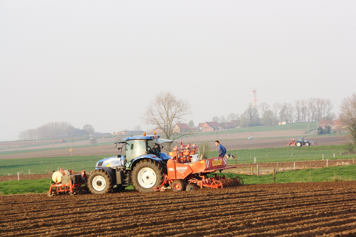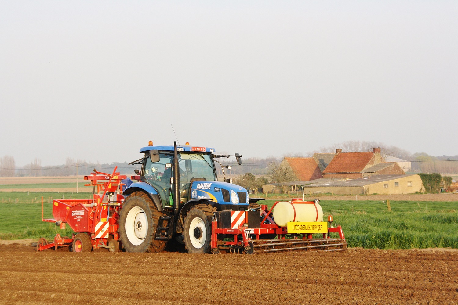 De New Holland TS 135 A met Grimme planter van loonbedrijf Vanleene uit Koekelare is druk in de weer. (Foto Davy Tandt)