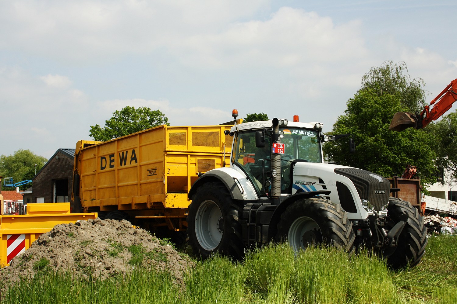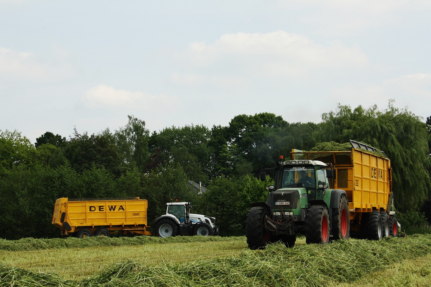 We konden afgelopen grasseizoen ook een vreemde eend in de bijt vinden bij de trekkervloot van Peltijn Agri uit Hansbeke. Tussen al de groene Fendt tractoren vonden we ineens een witte ‘Popeye’ Fendt Vario 936 met een Dewa silagewagen. ( Foto Maarten Martens)