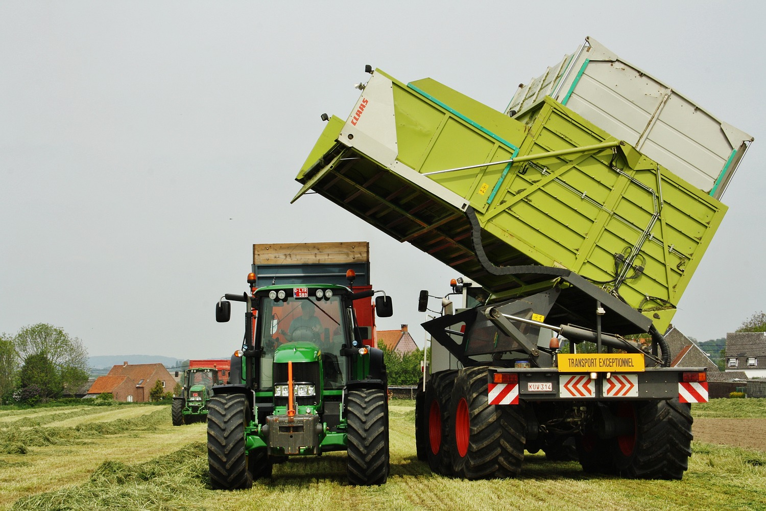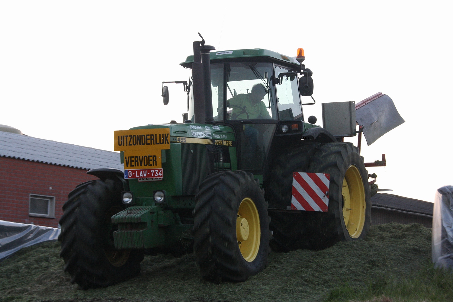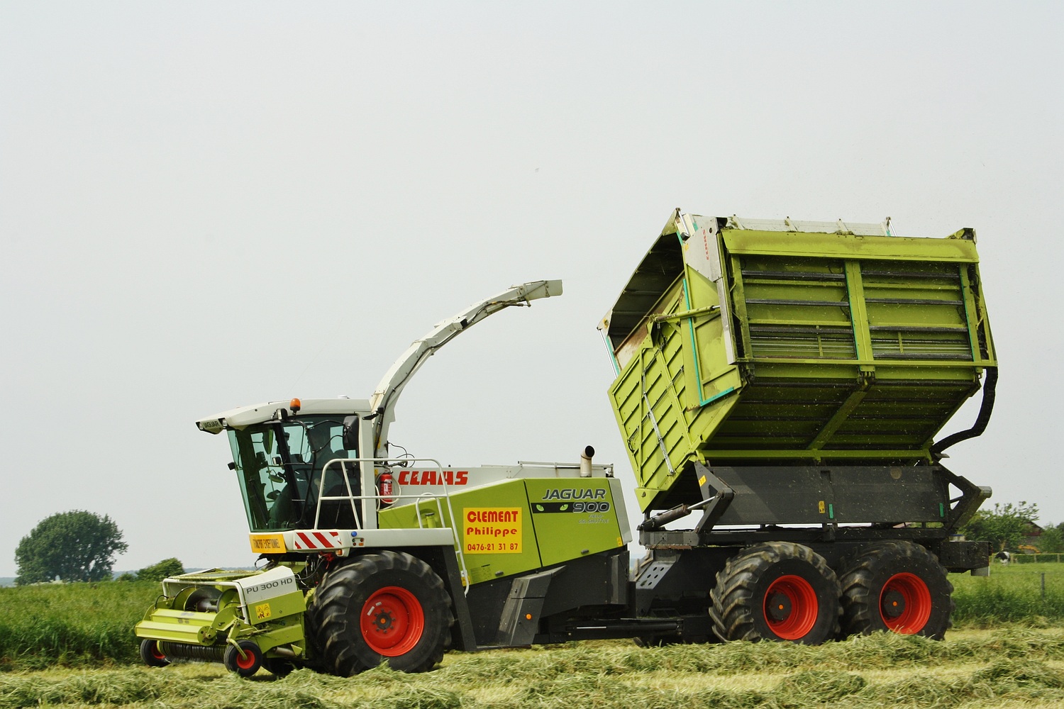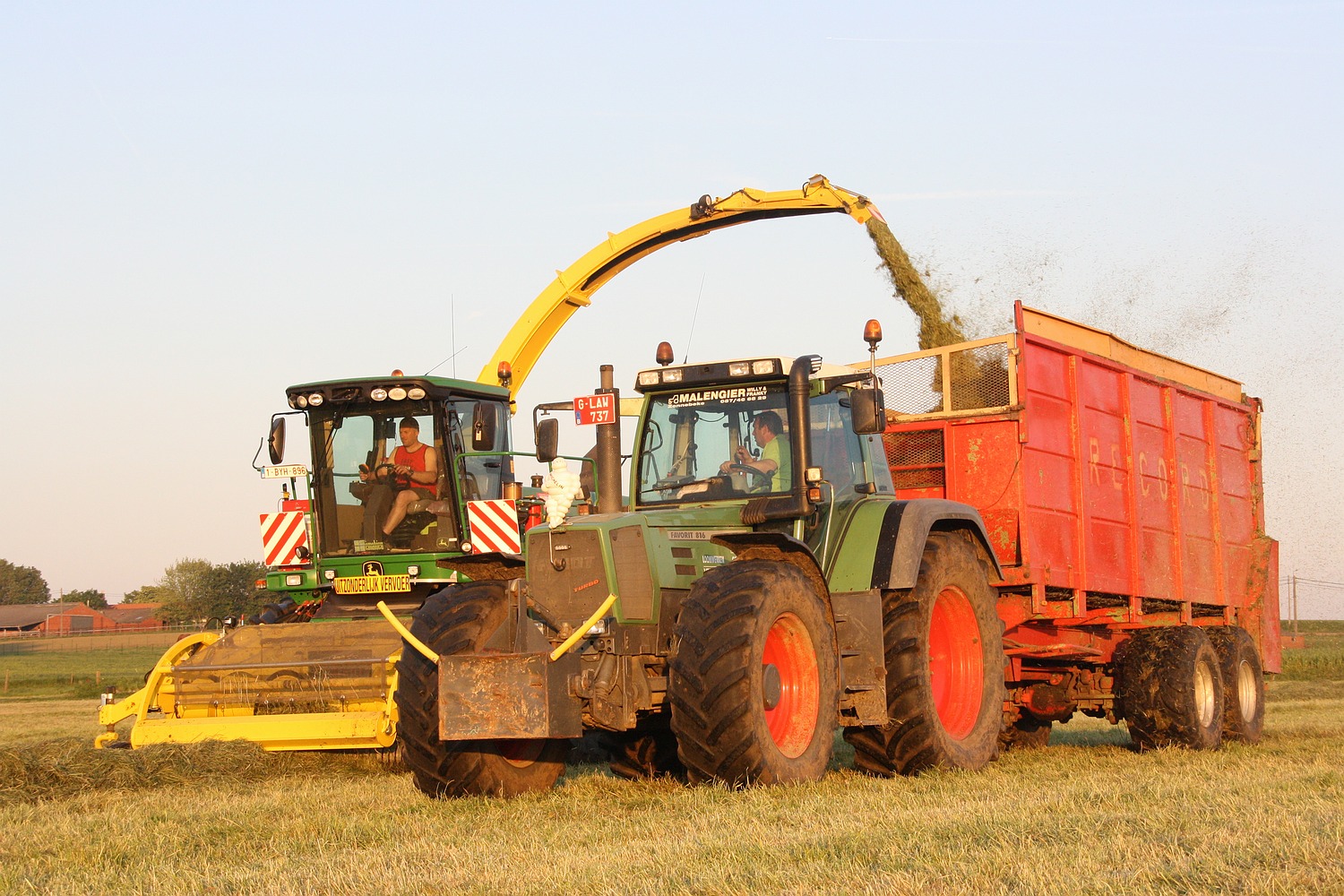 Vooraan in Henegouwen, tegen de taalgrens is men gek op bunkerhakselaars. Het gebruik ervan is hier zeer goed ingeburgerd. Ten huize Clément Philippe uit Montreoul-au-Bois vinden we een Claas Jaguar Field Shutte 900 CSL. Een John Deere 7530 met Corné wagen voerde het vers gehakselde gras weg. (Foto Maarten Martens)