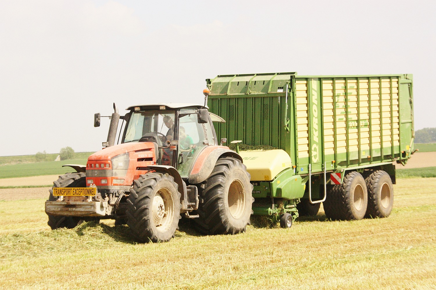 Loonbedrijf Debliquy uit Bury zien we vaart maken in het gras met hun Same Rubin 180 en Krone ZX 450 gl opraapwagen. (Foto Davy Tandt)