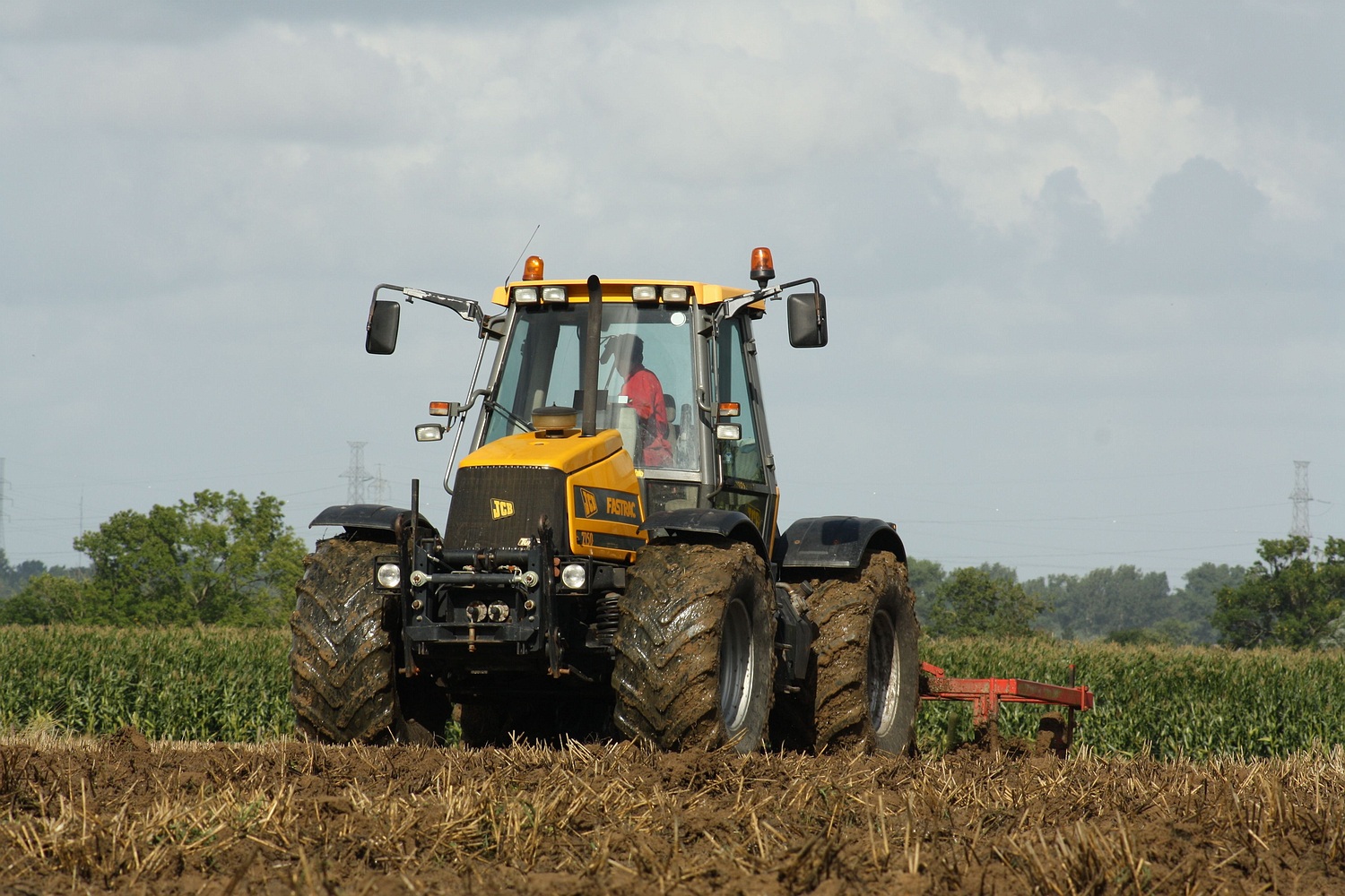 Her en der waar het wat droger is wordt het graanland ook bewerkt. Deze landbouwer trekt het land open met een JCB Fastrac 2150 en een dieprgonder. (Foto Maarten Martens)