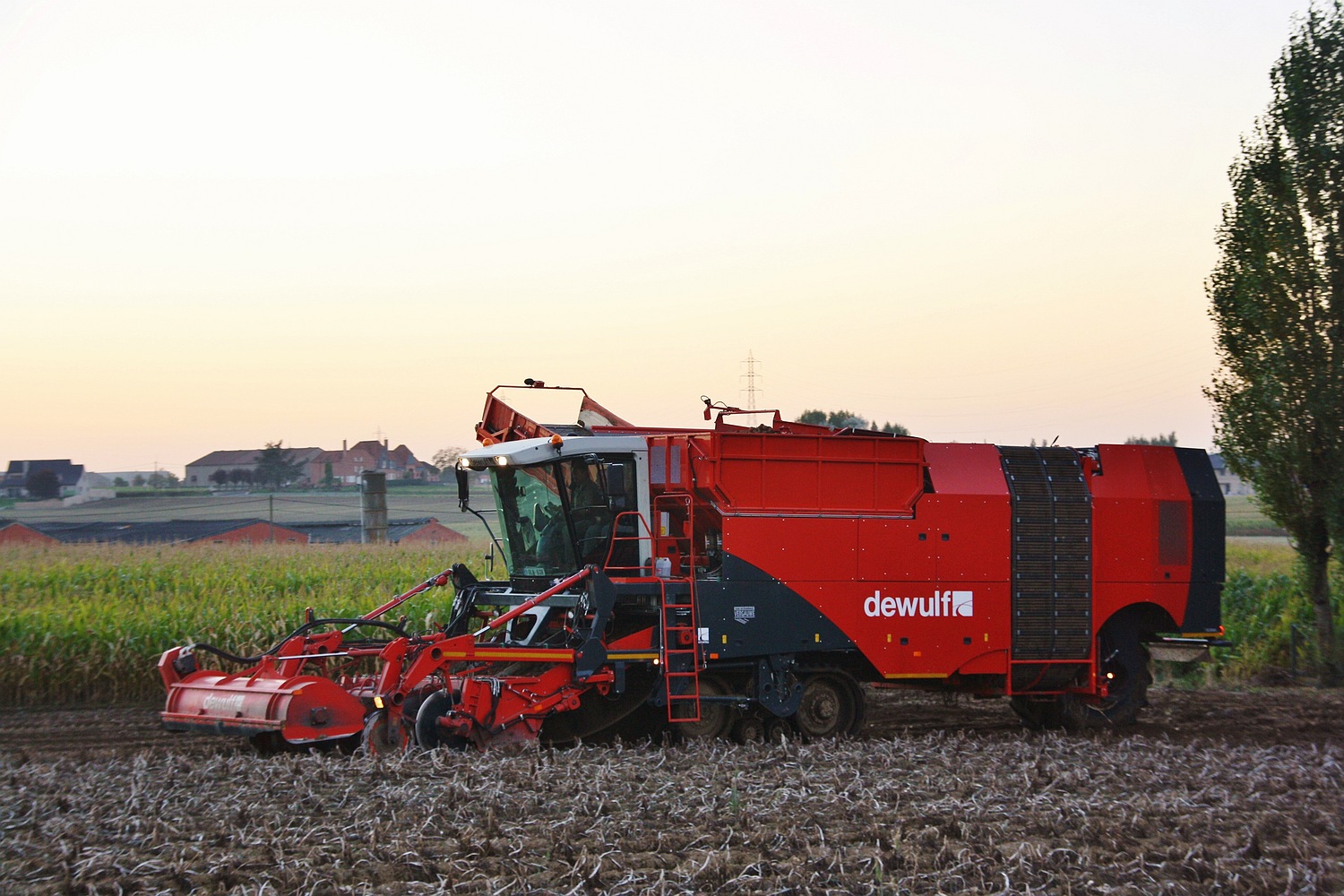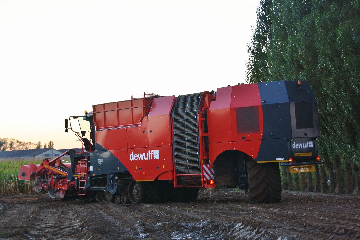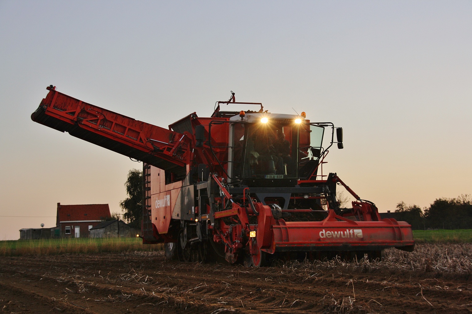 Je kan het een imposant slagschip noemen, deze Dewulf Quatro van loonbedrijf Vergauwe uit Westrozebeke. (Foto Davy Tandt)