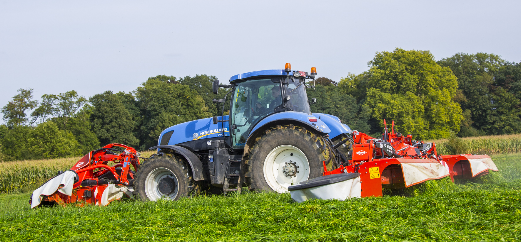 Dankzij de goede verstandhouding met de dealer, is op de McHale-perswikkelcombinatie en een Case CVX 195 al New Holland wat de klok slaat. Vanoppen heeft tien NH-trekkers en huurt er één bij als het druk is. Vooral de T7-serie met een vermogen tussen de 250 à 270 pk is geliefd. “Bedoeling was ze te vervangen op 12.000 uren als ze zes jaar oud worden, maar het is er niet van gekomen. Waarschijnlijk is dat in 2018 wel het geval en komt er een T7.270 met PowerCommand bij. Vario is luxe voor op de baan, maar wij zitten meestal in het veld. Vandaar dat we er maar twee hebben, de Case IH CVX heeft trouwens 14.000 uren op de teller. We hebben de komst van een gps-systeem lang uitgesteld, maar nu starten we er met één. We zijn lang van mening geweest dat de boer toch niet bijbetaalt. We zien vooral voordelen bij het maaien of mais zaaien.” De oogstmachines overigens rolden in Zedelgem van de band, de loonwerker heeft twee FR-hakselaars, drie NH-maaidorsers en vijf NH-grootpakkenpersen.
