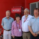 Koen Dieker (r) samen met Dipl. Ing. Hans Güttler, Gisela, vrouw van heer Güttler en George Stecher (l)