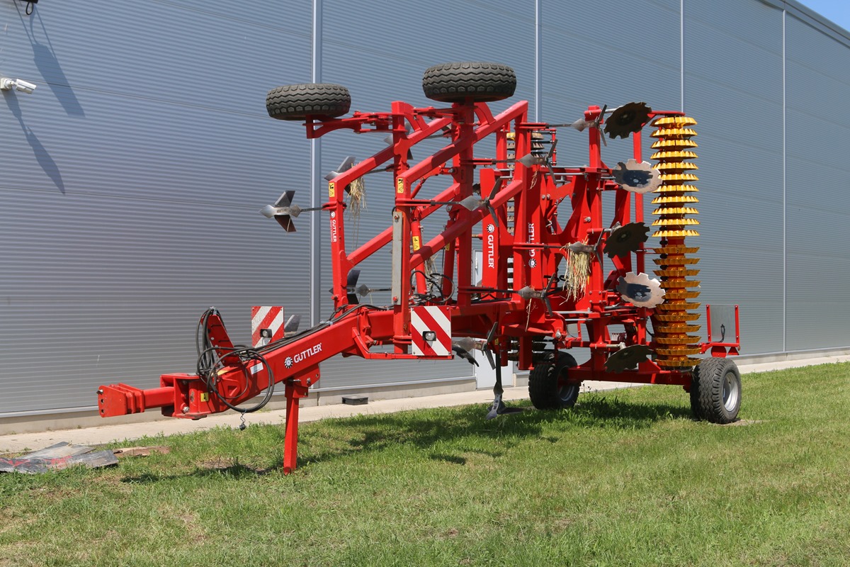 SupperMaxx De Güttler SuperMaxx is een 5 of 7-balkige triltandcultivator die zowel in de stoppelbewerking als voor zaaibedbereiding kan ingezet worden. De machine is verkrijgbaar in 3, 5 en 6 meter brede uitvoering als 5-balksmachine, en in werkbreedtes van 10 en 12 meter als 7-balkige uitvoering. De triltanden zijn voorzien van een 2de spiraal die een ondersteunende functie van de tand hebben en in zware omstandigheden de tand van extra veerkracht voorzien. Ook voorkomt de 2de spiraal het zijdelings uitwijken en verlengt zo de levensduur van de tanden. Standaard zijn de tanden uitgerust met 55 mm brede beitels, optioneel kunnen ze worden uitgerust met 150 mm brede ganzevoetbeitels. De tandafstand bedraagt 13 centimeter. Achteraan is de SuperMaxx uitgerust met een veereg die zowel een egaliserende werking heeft als de stroresten die aan de oppervlakte achterblijven uit elkaar trekt en over de losgetrokken grond verspreidt. Optioneel kan de cultivator ook uitgerust worden met de RollFix, een kunststof prismawals met een doormeter van 33 centimeter. Voor het inzaaien van groenbemesters kan een Güttler pneumatisch zaaiapparaat opgebouwd worden.