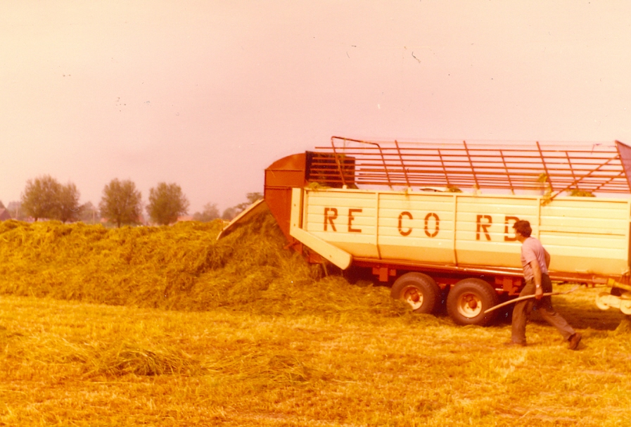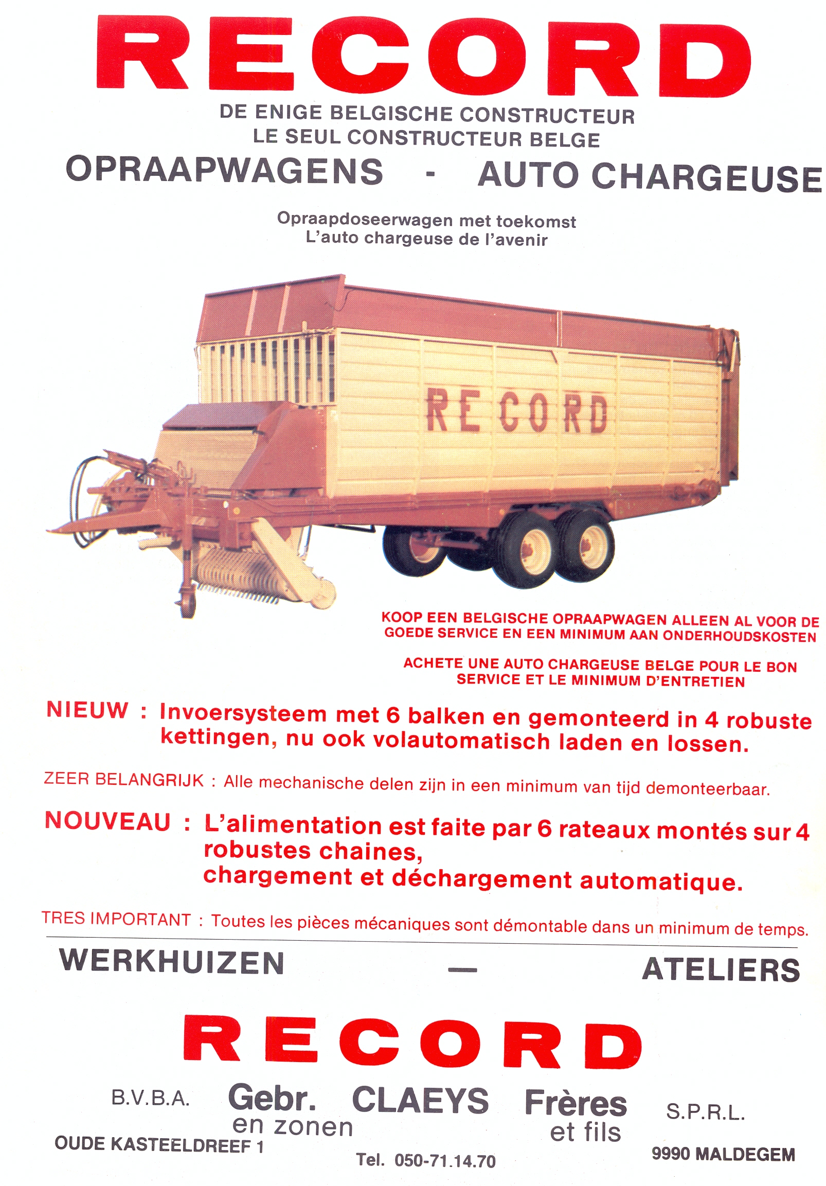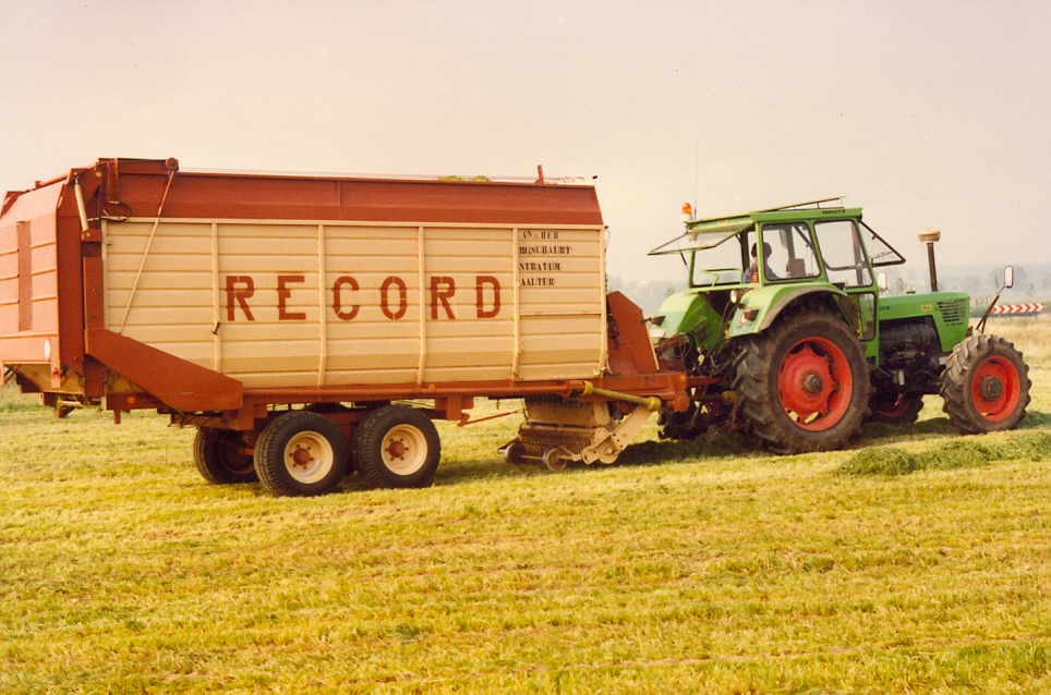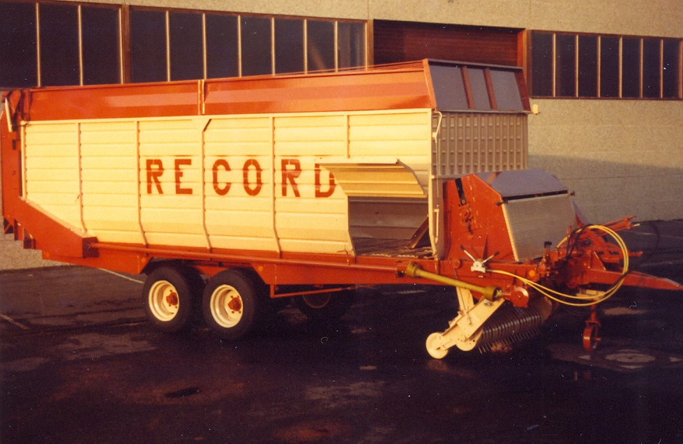 Guy Claeys is de huidige medebedrijfsleider van Record. Sinds 1981 is hij actief binnen het familiebedrijf en vertegenwoordigt er de derde generatie. “Het idee om opraapwagens te gaan bouwen kwam van mijn vader Carlos en zijn broer Paul. Begin de jaren tachtig boomde de markt van opraapwagens door het succes van de voordroogkuil. Ondanks dat er heel wat gerenommeerde merken, zoals Claas, Kemper, Pöttinger, Mengele, Strautmann, Landsberg, Fella, Krone, Taarup, enz., actief waren op de Belgische markt, besloten mijn vader en mijn oom om opraapwagens te gaan vervaardigen”, vertelt Guy. “De kennis voor het bouwen van een robuust chassis, een bodemketting met meenemers, loswalsen en de achterdeur hadden we in huis doordat we al jaren met succes silagewagens bouwden. Voor de eerste serie die bestond uit de modellen B25 en B35 kochten we de opraper en het invoersysteem in bij het Italiaanse Berma. Het opvoermechanisme met kettingtransporteur met twee rollenkettingen waaraan zes gestuurde meenemers met tanden waren bevestigd, werkte goed in een niet te zwaar zwad. Maar in een onregelmatig zwad en vooral wanneer het taaie Engelse raaigras Vigor moest worden verwerkt, gebeurde het wel dat de kettingen braken. Daarom ontwierpen we zelf een invoersysteem met zes meenemers en vier kettingen voorzien van zware geleidingsrollen met lagers en een slijtvaste tandwielaandrijving. Dit laadaggregaat was niet alleen veel bedrijfszekerder, maar zorgde ervoor dat het gewas niet naar achteren, maar naar boven werd geperst, wat aanzienlijk scheelde in de vermogensbehoefte”, verklaart Guy.