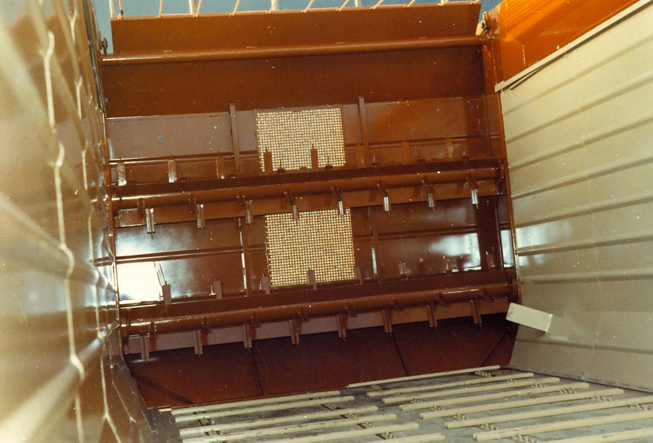 De losbodem met 4 kettingen en de 2 loswalsen. De hydraulisch opengaande achterdeur was regelbaar in hoogte.