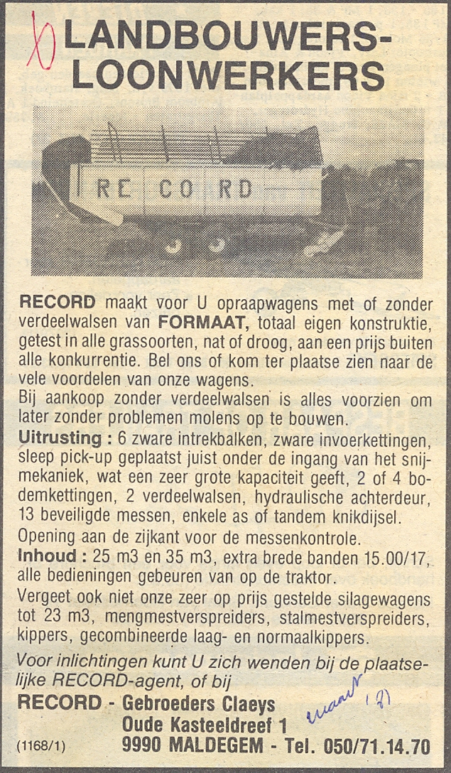 Pub daterend van maart 1981 voor de Record-opraapwagen.
