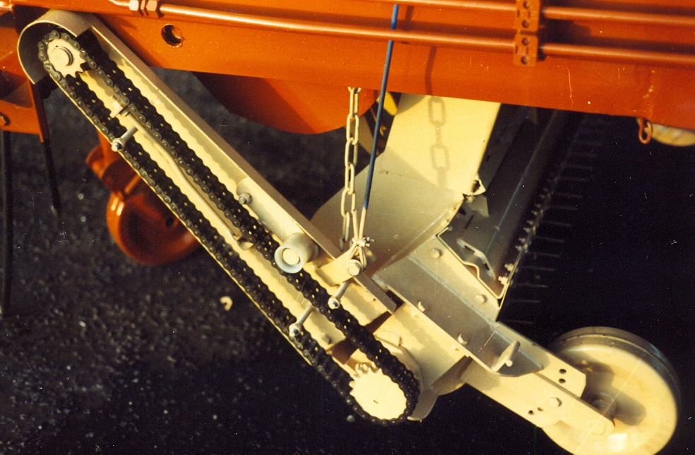 De bodemketting werd aangedreven door een hydromotor en 2 haakse tandenwielen.