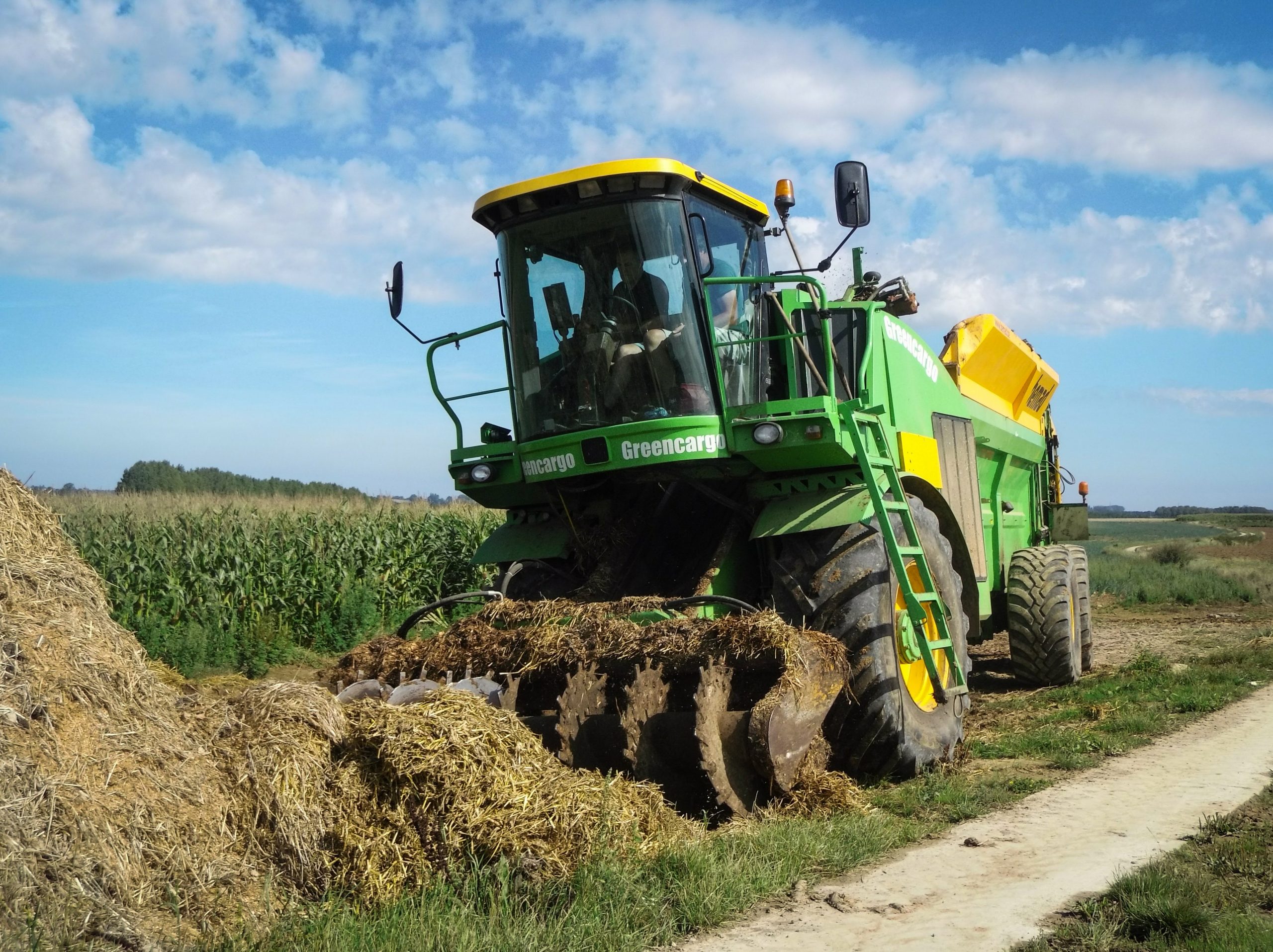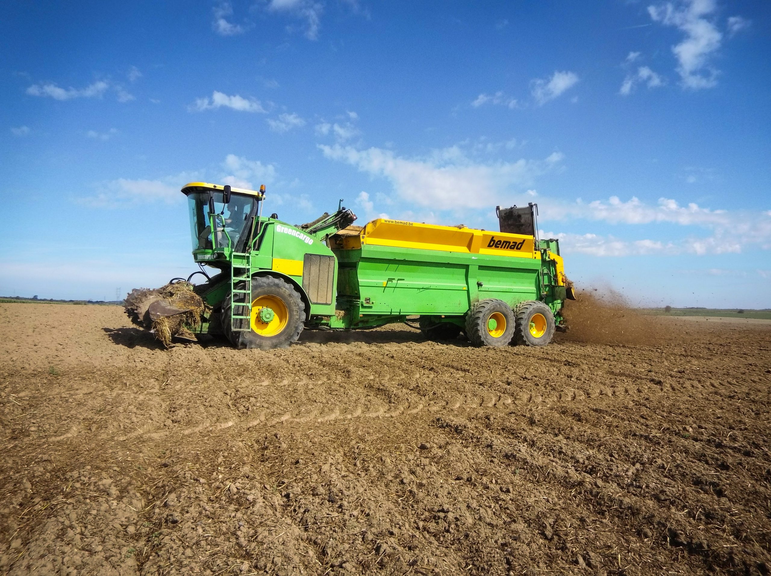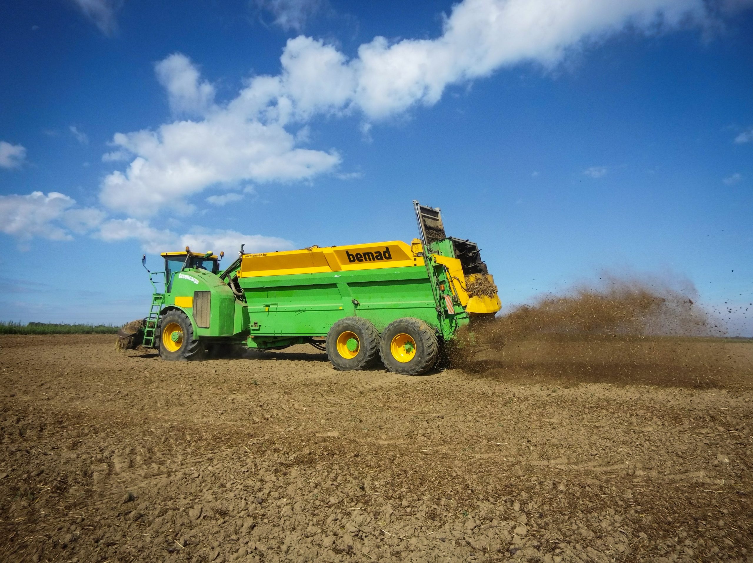 Loonbedrijf Degroote uit Nijvel begon eind jaren ’80 met mest verspreiden. Al snel maakte het bedrijf een overstap van trekkers met mestwagens en een bulldozer naar een omgebouwde bietenlader. Maar de omgebouwde machine voldeed niet aan de wensen van Alain Degroote, die begon te tekenen aan een eigen machine. Als basis werd gekozen voor een Joskin Tornado3, die voorzien werd van een aangedreven as en een stuuras. Deze werd via een knikbesturing gekoppeld aan een voorste chassis met daarop een Scania motor van 500 pk, een laadsysteem met frees en een cabine van een John Deere hakselaar. De Greencargo heeft een bakinhoud van 30 m³, die op minder dan 3 minuten gevuld is. Strooien kan tot een werkbreedte van maximaal 30 meter, de minimale strooihoeveelheid bedraagt 3 ton per hectare. De machine wordt aangestuurd via Isobus op 2 terminals, 1 van John Deere die tevens instaat voor de GPS besturing en 1 ontwikkeld door de Degroote zelf.
