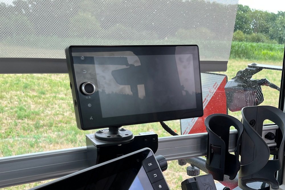 De tweede machine die we testen is een MF 8S.305 Xtra Dyna-VT, gekoppeld aan een rotorkopeg met een werkbreedte van 6 meter. We maken kennis met het automatische keersysteem MF AutoTurn. Na een snelle configuratie voor het perceel, neemt het systeem automatisch de bochten op de kopakker over. De eerste stap is het selecteren van een van de drie bochtmodi. Vervolgens kies je de volgende werklijn en de draaicirkel die moet worden toegepast. Deze instellingen duren slechts enkele seconden. Daarna kun je als chauffeur volledig de handen van het stuur halen. Onze bevinding is dat deze opties de vermoeidheid vermindert, de tijd op de kopakker optimaliseert en de bodemverdichting beperkt.