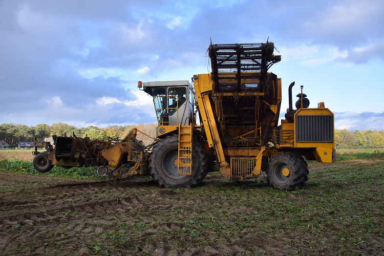 Alvorens over te gaan tot aankoop van de Kleine-bietenrooier informeerde Jordy bij Grimme of er nog wisselstukken te verkrijgen zijn. “Dat was gelukkig zo want Grimme heeft de volledige voorraad van Kleine overgenomen. Bij levering zijn er mensen van Grimme langs gekomen voor het instellen van de dieptecontrole en automatische piloot. Er was een oudere mechanieker van Grimme bij die nog bij Kleine meegelopen had. Hij kende de machine dus nog heel goed en heeft ons alles uitgelegd. We hebben dan in de winter de machine helemaal opengedaan en bijvoorbeeld alle lagers vernieuwd. Ik ken de machine nu dus ook van binnen en van buiten. Toen alles gereviseerd was, hebben we de rooier herspoten in de originele kleuren. De RAL-kleuren van Kleine waren beschikbaar via Kramp. Toen we klaar waren, waren de techniekers van Grimme danig onder de indruk van het resultaat.
