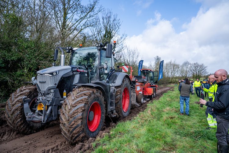 Ongeveer vijftig boeren, loonwerkers en dealers kwamen eind maart bijeen in het Britse Prescot voor een praktijkgerichte demodag rond banden en bandenspanning. Het evenement, georganiseerd door loonwerker en melkveehouder Olly Harrison, draaide om één centrale vraag: wat levert de juiste bandenspanning en bandentechnologie concreet op in de dagelijkse praktijk?