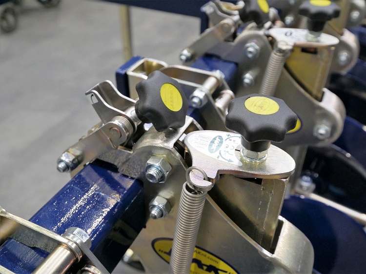 Met het klik-klemsysteem zijn de schoffelelementen bevestigd. De rij-afstand is hiermee ook gemakkelijk aan te passen.