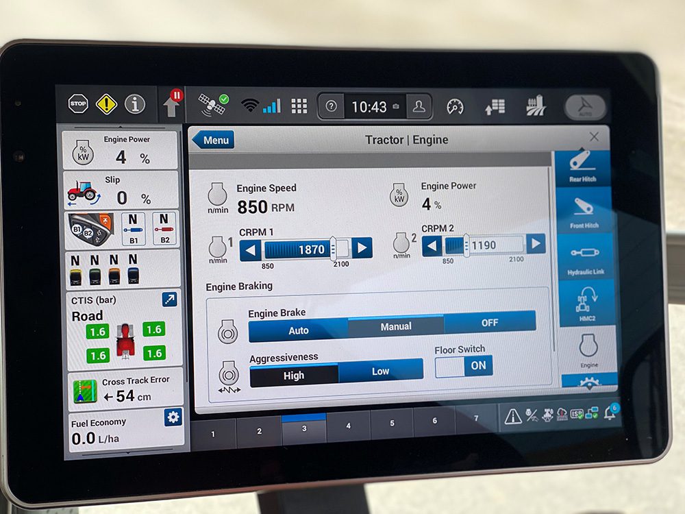 En als je dan nog een beetje meer vermogen wilt, maar met name landwerkzaamheden uitvoert, kan een keuze voor een Magnum interessant zijn. De Magnum 355, 385 en 405 zijn met name geschikt voor het uitvoeren van zware werkzaamheden op het land. De trekker heeft dan ook verschillende handigheden. Zoals een slimme gewichtsverdeling tussen de voor- en achteras, waardoor een frontgewicht niet altijd nodig is. Ook is er plek vrijgehouden bij de vooras, waardoor er meer ruimte is tussen het frame en de motor. Dit zorgt ervoor dat de draaicirkel van de trekker is verkleind naar 6,8 meter. Om draaien aan het einde van het perceel makkelijker te maken, wordt het remmen in bochten extra bijgestuurd. “Stel je voor dat je naar links draait en remt, dan wordt er extra op de linker voorband geremd om de draaicirkel te verkleinen”, legt een andere Product Manager van Case IH uit.