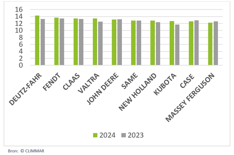 De prestaties van Deutz-Fahr noteerden een gemiddelde score van 14,3. Een aanzienlijke stijging van +1 punt in vergelijking met de vorige editie. In de afgelopen drie jaar is Deutz-Fahr door een continu verbeteringsproces van de derde plaats op de ranglijst van DSI in 2024 naar de toppositie gestegen.
