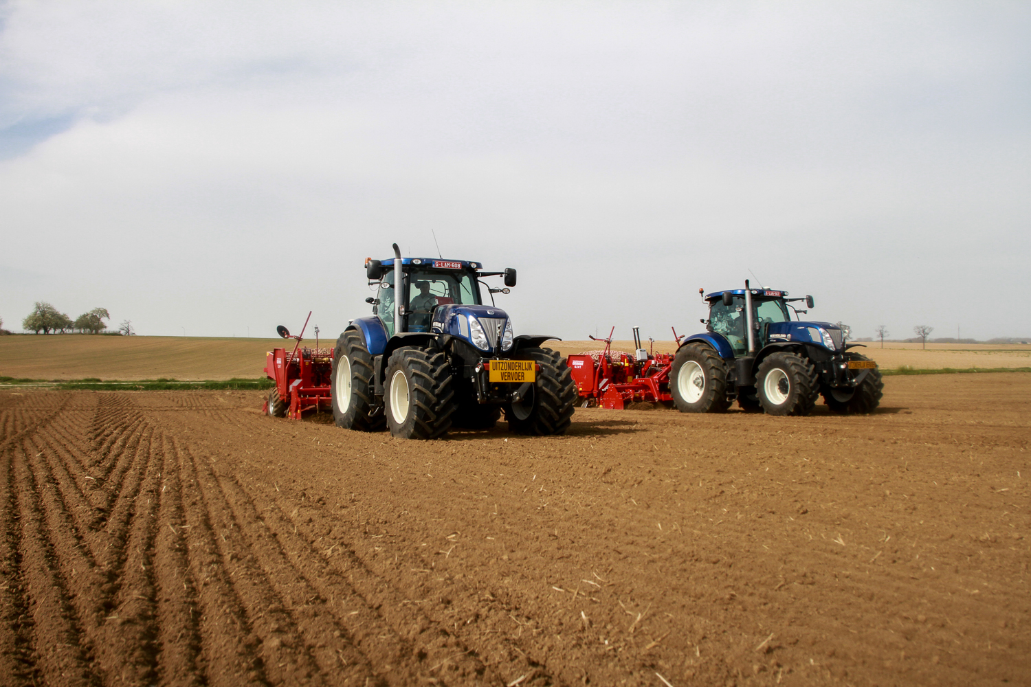 Op de mooie glooiende akkers van Braives, op de grens van het Brabantse Leem en het droge Haspengouw, kwam De Loonwerker deze combinaties tegen. 2 New Holland T7.270’s met elk een Grimme GL34T getrokken aardappelpoter waren naast elkaar de aardappelen in de grond aan het rijden.