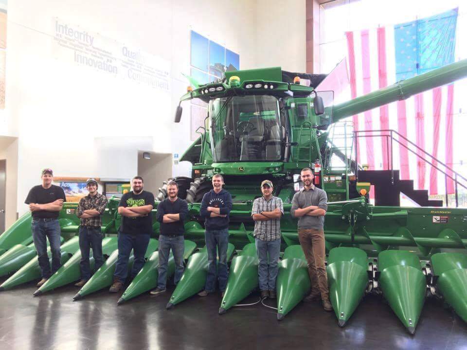 We zijn gestart met de fabriek van Case IH in Grand Island, Nebraska op maandag 14 november. In deze fabriek worden de combines en zelfrijdende maaiers voor Case IH gemaakt, alsook de New Holland combines voor Noord Amerika. Verhouding Case – NH is 85% – 15%. Dinsdag bezochten we de fabriek van Claas in Omaha, Nebraska, waar de Lexion in CAT kleuren wordt gemaakt. Deze fabriek heeft echter enkel een montagelijn, er wordt niets gefabriceerd. Woensdag stond de tractor fabriek van John Deere in Waterloo, Iowa waar de 7,8 en 9R series worden gebouwd, alsook de 6R voor de Noord Amerikaanse markt op het programma. Ook hebben we het John Deere museum bezocht dat 2 jaar geleden werd geopend in Waterloo. Voor donderdag was er niets gepland, dus hebben we een bezoek gebracht aan het John Deere paviljoen in Moline, Illinois. Helaas konden we die week geen rondleiding krijgen in de combine fabriek maar hebben we toch de inkomhal eens bezocht om de tijd wat te doden. En om de week af te sluiten hebben we vrijdag de fabriek bezocht waar ze de John Deere mais planters bouwen. Tot mijn grote verbazing is Vlaanderen goed vertegenwoordigd in Moline, dit ontdekte ik door het naamkaartje van onze gids, “T. Verstraete”. Ik sprak de man aan over zijn naam en vertelde hem dat ik van België afkomstig was, hij vertelde mij dat hij familie had in ” iekloe”, ik moest hem toch vragen om het een 2de keer uit te spreken vooraleer ik door had dat hij “Eeklo” bedoelde. Er was ook een andere gids genaamd “Devrieze” die mij wist te vertellen dat zijn vader van België afkomstig was en zijn moeder uit Duitsland. Blijkbaar zijn er een honderdtal werknemers in die John Deere fabriek met Belgische roots.