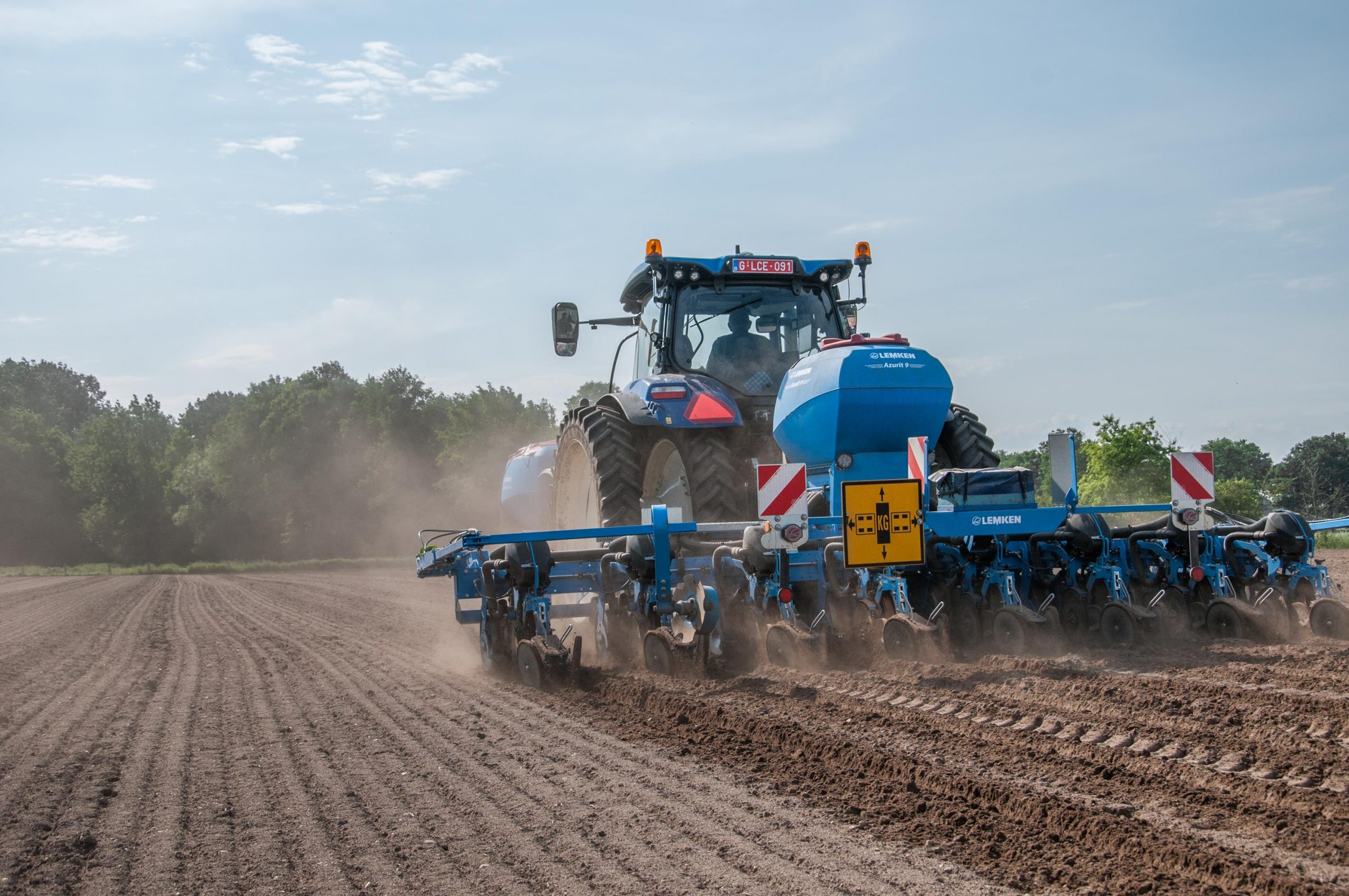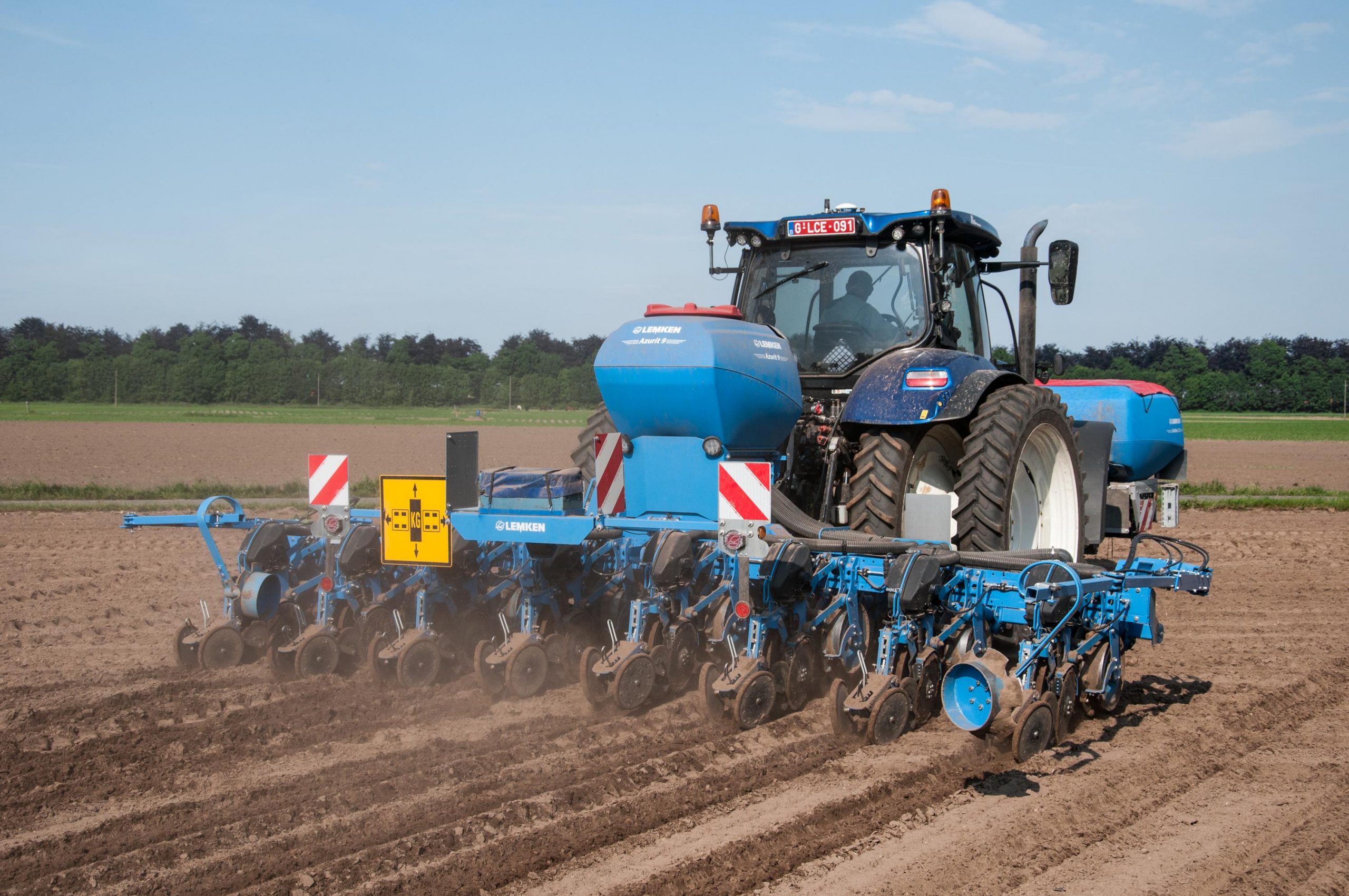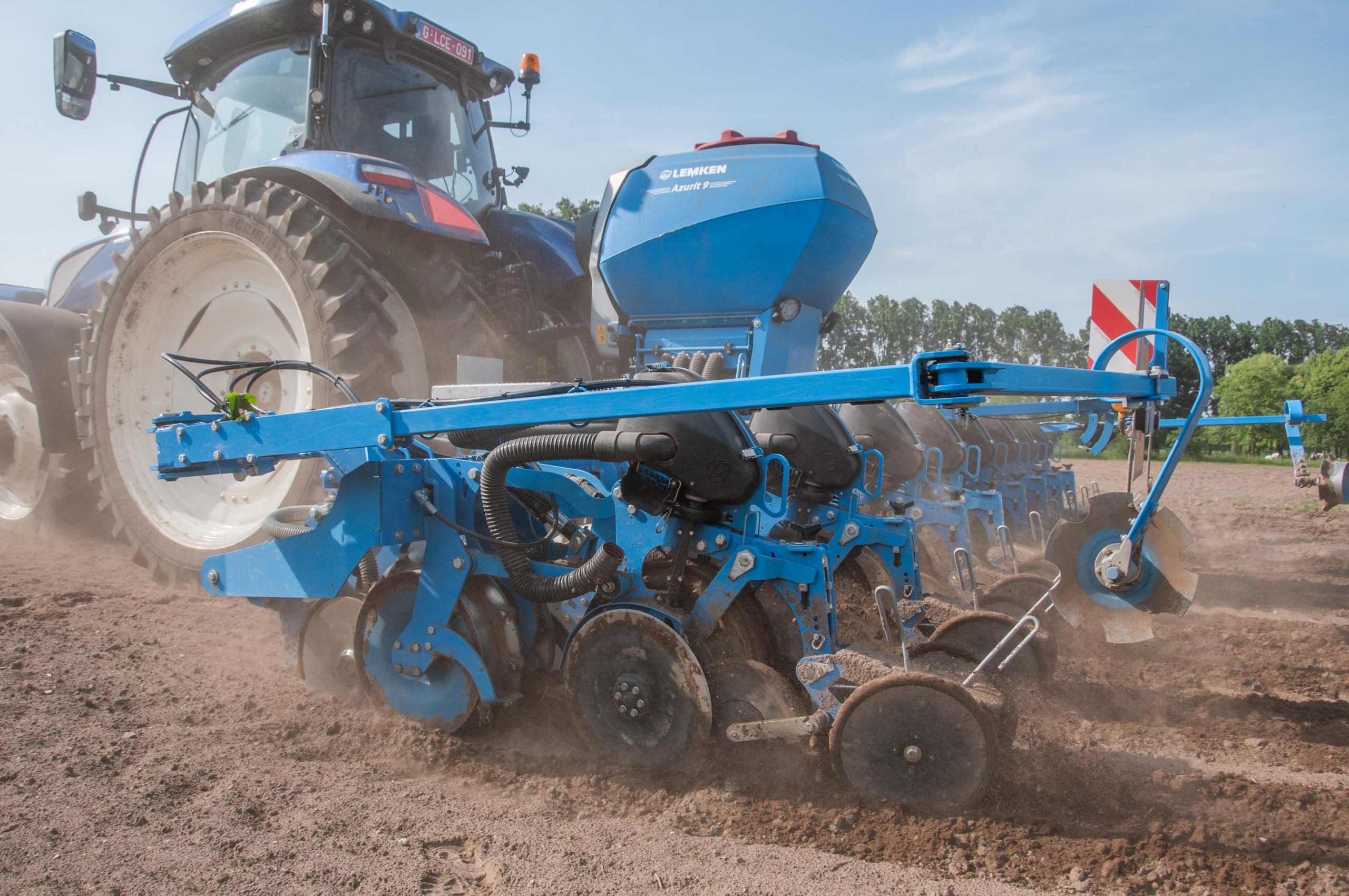 De Lemken combinatie, hier gedragen door een New Holland T7.270, bestaat uit een Solitair 23 fronttank en de Azurit 9/8.75 KD precisiezaaimachine. De Solitair fronttank heeft een inhoud van 2000 liter en voorziet de zaaicombinatie van de nodige kunstmest. De 8-rijige Azurit maakt gebruik van het DeltaRow principe, waarbij de maïs in 2 rijen gezaaid wordt met een onderlinge afstand van 12,5 centimeter. Tussen de hoofdrijen blijft de afstand 75 centimeter. De kunstmestgift wordt centraal tussen de 2 smalle rijen maïs afgelegd. De Azurit is voorzien van een centrale voorraadtank die de afzonderlijke zaaielementen voorziet van zaad wanneer nodig. Hierdoor wordt het vullen van aparte, kleinere voorraadtanks voorkomen.