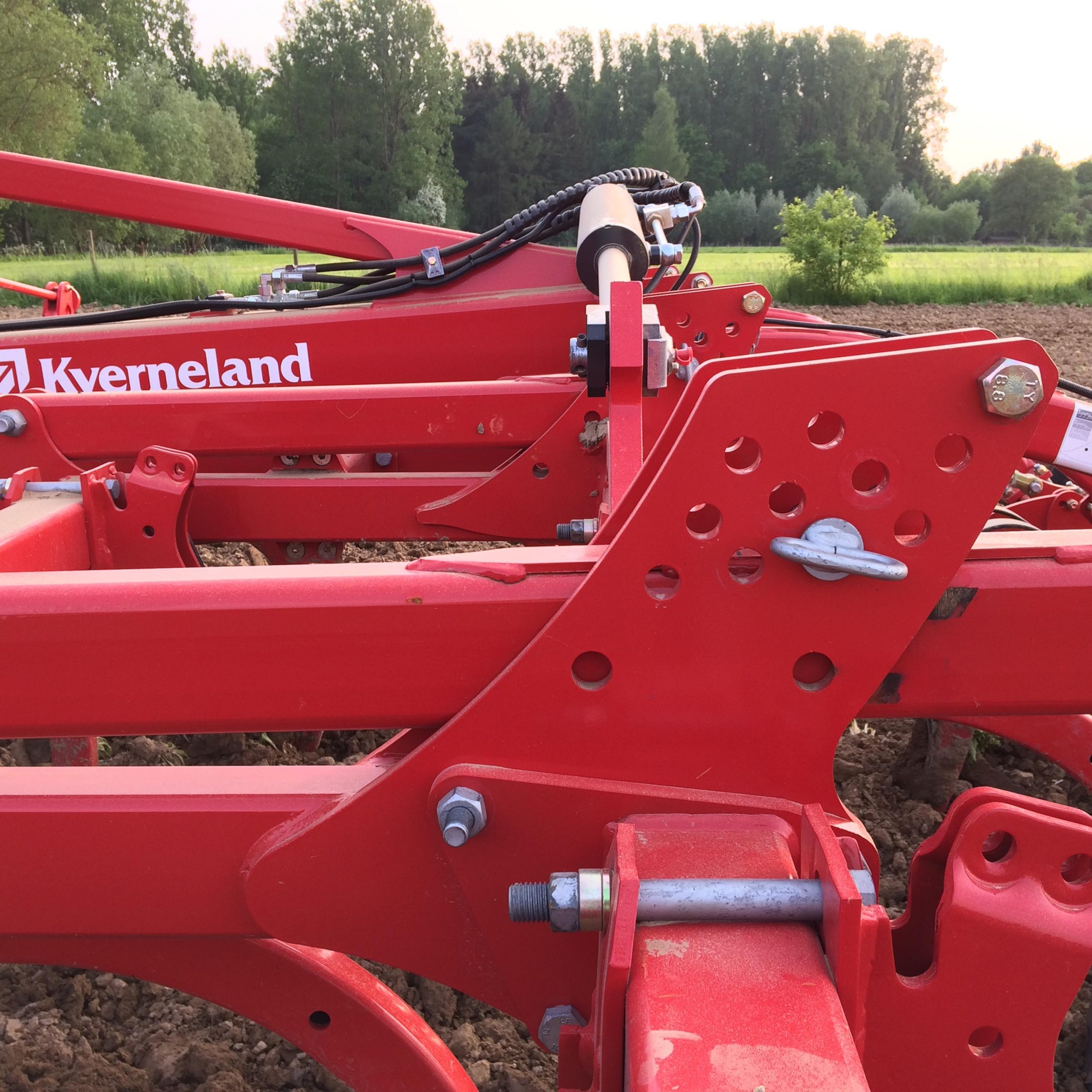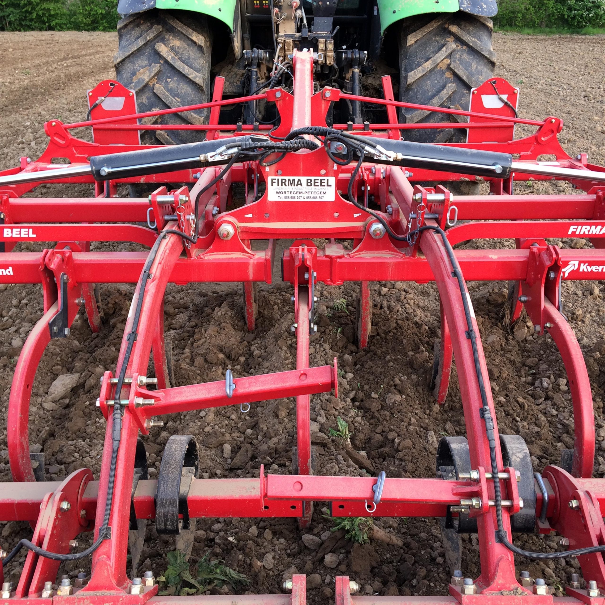 De CLC Pro Classic is in zijn 4m opklapbare versie een imposante verschijning. Doordat hij centraal opklapt in 2 delen is hij constructiematig een buitenbeentje in vergelijking met standaard cultivators. Geen probleem dus op de weg met de breedte aangezien je perfect binnen de 3m blijft. Het is een 3 balkscultivator die gevolgd wordt door egaliserende veertanden en een nalooprol/wals. Over een breedte van 4m staan er 13 tanden met een onderlinge afstand van 290mm.  De constructeur heeft gezorgd voor een hoge bodemvrijheid (870mm) en voldoende afstand (80cm) tussen de 3 balken. Hierdoor geef je de gewasresten de ruimte om vlot te “laveren” tussen de rijen tanden en vermijd je op die manier ook verstoppingen. Kverneland werkt bovendien niet met een rechte maar wel met een volledig gebogen tand. De tanden (70 x 40mm) zijn hol en hebben een wanddikte van 6mm. Ze zijn niet gelast maar worden met bouten bevestigd waardoor het frame minder stress ervaart. Opmerkelijk is dat deze tanden naar links en rechts 20 cm kunnen uitwijken bij hinder door obstakels zonder blijvend te vervormen. De tanden ondergaan dezelfde gekende hittebehandeling als de ploegen in de fabriek in Noorwegen.  De aanhechting met het frame zit onder een hoek van 35 à 40° in vergelijking met 90° bij de meeste andere merken. Hierdoor wordt de tand verplicht de grond in te gaan waardoor het zweven van de cultivator onderdrukt wordt. Een stabiel frame is een basisvereiste voor een egaal resultaat. Door op de CLC Pro Classic te gaan werken met gebogen armen wordt de machine een halve meter korter.  Dit maakt het werktuig niet alleen lichter maar brengt het zwaartepunt dichter bij de trekker waardoor deze minder snel de neiging heeft om licht te worden in de neus.