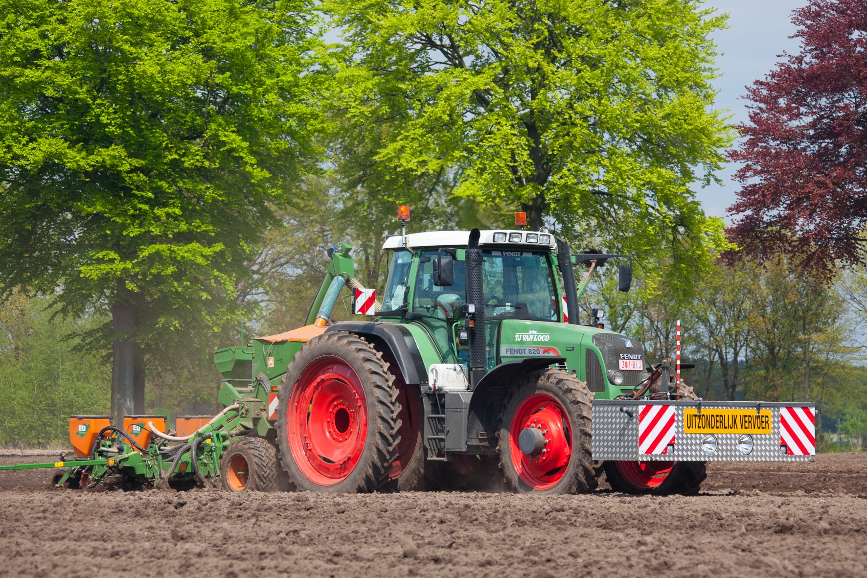 Voor het poten van aardappelen gebruiken ze in Kasterlee twee Miedema-planters. Eén van de twee trekkers is uitgerust met GPS. Meestal werken ze samen op één perceel en volgt de andere in het kielzog. Eenmaal deze activiteit achter de rug is begint het maïs planten. TJ Van Loco heeft twee Amazone’s, één Becker en één Gaspardo 8-rijer. Alle combinaties staan op cultuurbanden. Met twee gedragen Amazone’s wordt een groot deel ook gespoten.