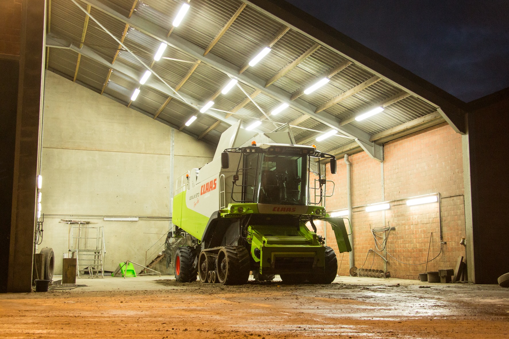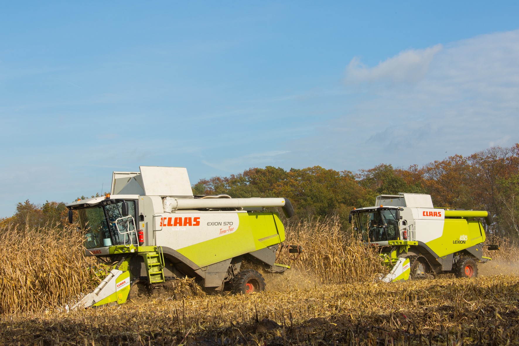 Zowel de aardappelen als de korrelmaïs worden op rupsen van het land gehaald. De Dewulf-Kwatro rooit uitsluitend bewaaraardappelen. Van het transport krijgt de werkplanner af en toe lichte stress, voor hem is het makkelijker dat de landbouwer de aardappelen zelf inschuurt. Van de korrelmaïs die ze oogsten met een Lexion 570 Terra Trac en Lexion 630, vermalen ze 90 % tot CCM. Daarvoor gebruikt de firma twee Dewa’s van 600 pk.