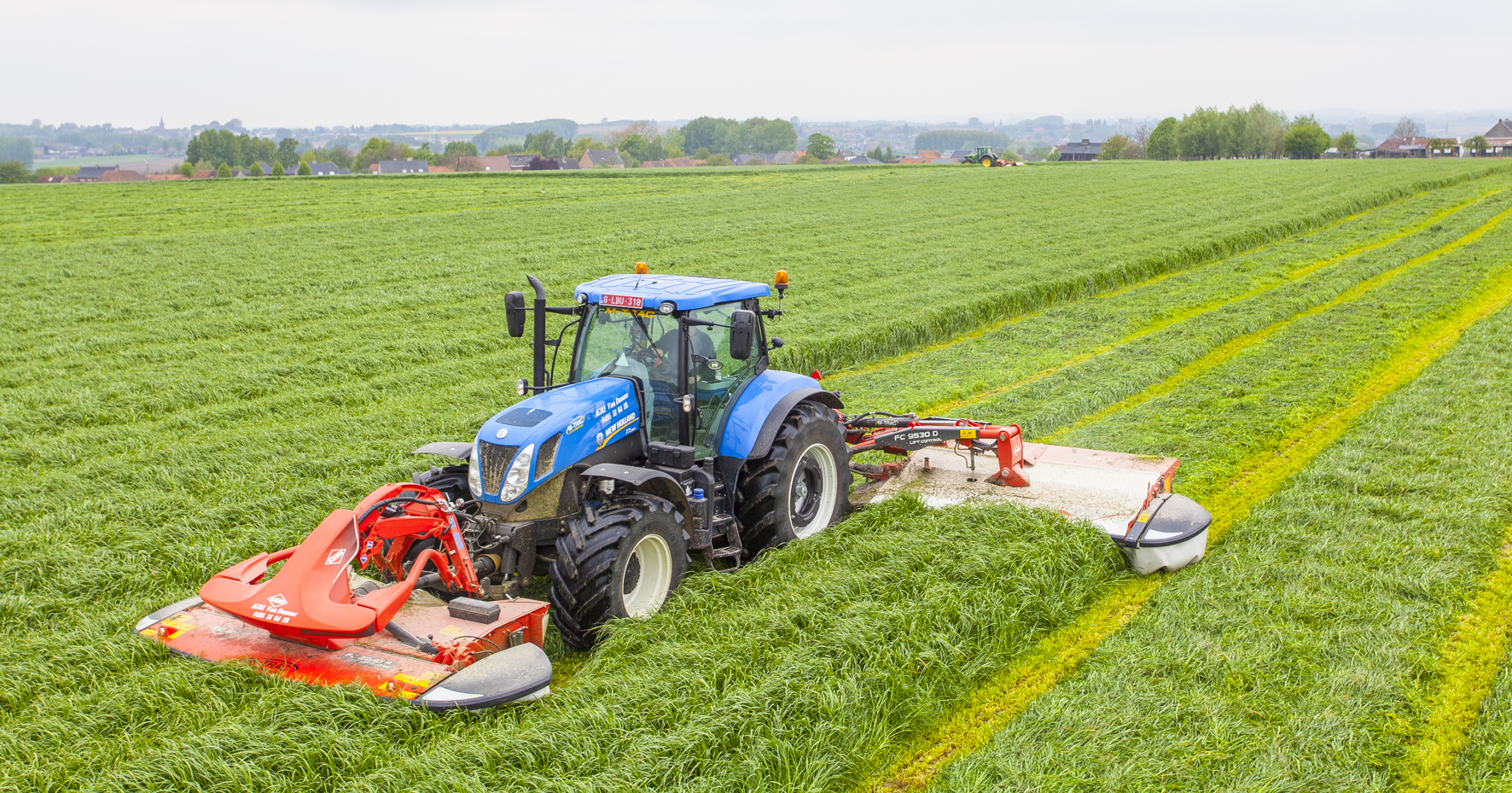 Omdat één verreiker het werk niet baas kan, huren ze een extra exemplaar. “Daarom bestelde Koen in augustus 2016 een nieuwe NH T7.210 met Packo MX-frontlader. In de winter kwamen we tot het besef dat die tractor helemaal geen ruimte had voor aan de frontlader. We gingen terug naar de dealer met de vraag of we de frontlader konden annuleren. Tijdens dat bezoek viel ons oog op een Kuhn-folder met triplemaaier met een NH T7.260 zoals wij er zelf één hebben. De aankoop was een gok, maar één die positief uitdraaide. Ze hebben met ons gelachen, maar we maaiden drie keer meer dan vooropgesteld en het waren vooral de grote boeren die er gebruik van maakten.”