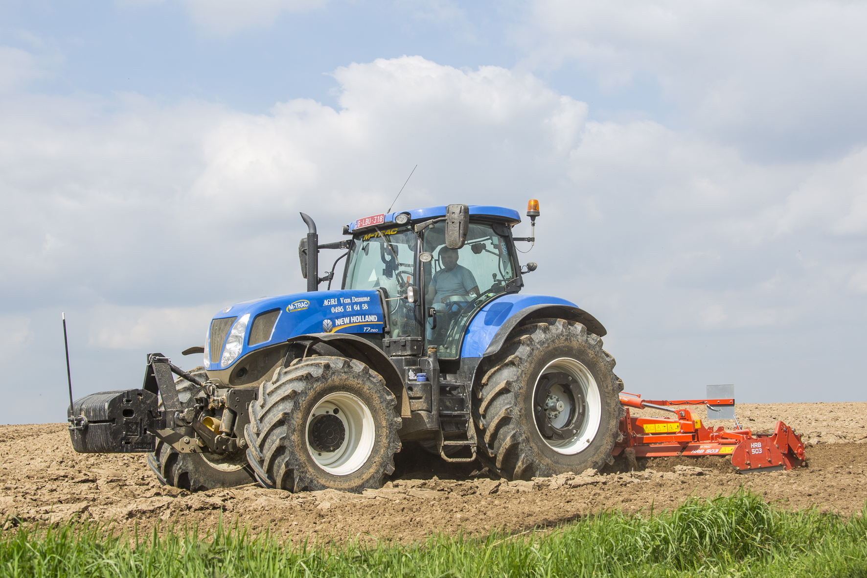 Een relatief jonge garage twee kilometer van de deur, ver moet Van Damme het niet gaan zoeken om aan zijn New Hollands te geraken. De loonwerker heeft er vier van de 7-serie, één van de 6-serie en één TM120. Gedurende het hele jaar huren ze een extra trekker. Elk exemplaar draait zo’n 800 uren per jaar. “Vario is onnodige luxe als je ze vooral op het land gebruikt. Wij kiezen voor de PowerCommand-transmissie die voor iedereen toegankelijk is. De 20.000 euro die we uitsparen spenderen we liever aan een gps-systeem. We verkiezen wel verstelbare steekassen omdat we zaaien met verschillende spoorbreedtes. Alle tractoren, oogstmachines tot zelfs de JCB-verreiker zijn uitgerust met Bluetooth. “Ik moet overal handsfree kunnen bellen.” Of er volgend jaar een nieuwe trekker zal komen is nog maar de vraag. Een zware tweedehandstrekker zoals een NH 8070 of Case Magnum zou welkom zijn. Hij zou het boegbeeld van de firma worden, waarmee ze kunnen deelnemen aan trekkertrek en allicht komt hij nog wel van pas voor het zware werk.