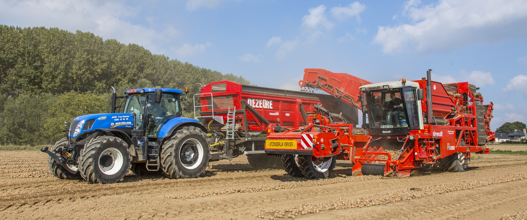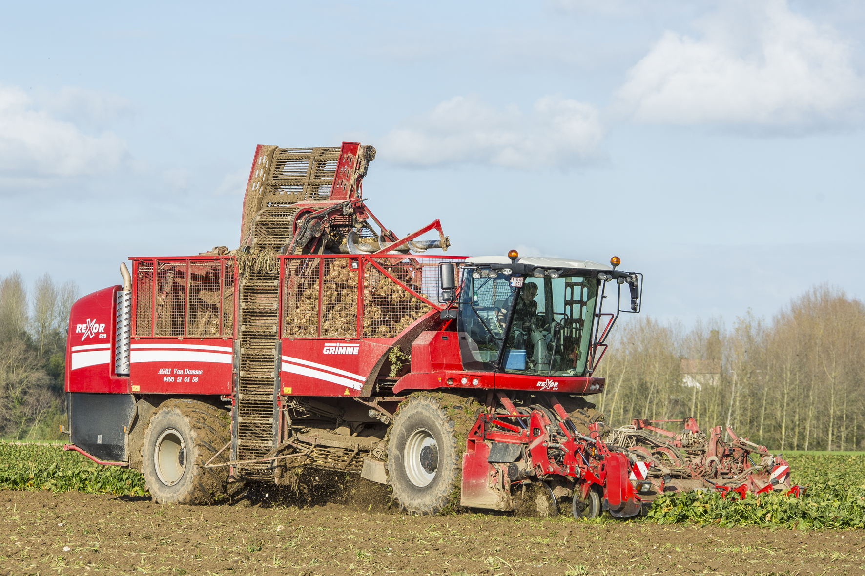 Boeren die zowel aardappelen als bieten telen, kunnen de tweeling Bram en Sven uit elkaar houden. Bram zit op de aardappelrooier terwijl Sven de bieten uitrijdt. Van Damme heeft drie Dewulf-rooiers; een R3000 Mega, een R3060 en een Kwatro. Alle machines waren jonge occasies. De aankoop van een nieuwe Kwatro zou onverantwoord zijn omdat de firma weinig vroege aardappelen rooit. Om de R3060 breder in te zetten, verbouwen ze de machine voor het oprapen van ajuinen. Sven zit achter het stuur van een Grimme Rexor 620 bietenrooier, een machine met veel techniek die veel extra klanten aantrok. Het was bij Vervaet zelf dat ze deze machine op de kop tikten. Met een Dezeure-hooglosser vangen ze het transport op bij de oogstmachines. Deze kar bolt 400 uren per jaar en werd zelfs eerder ingeschakeld voor het overladen van maïs toen het nat was.