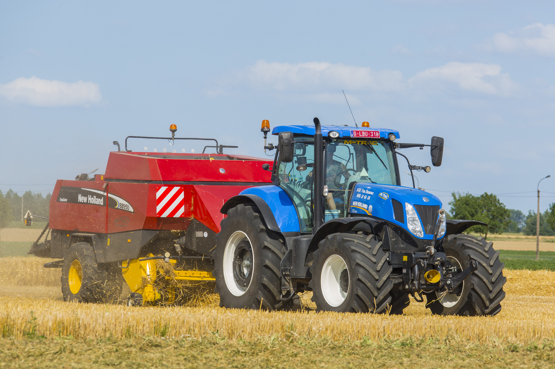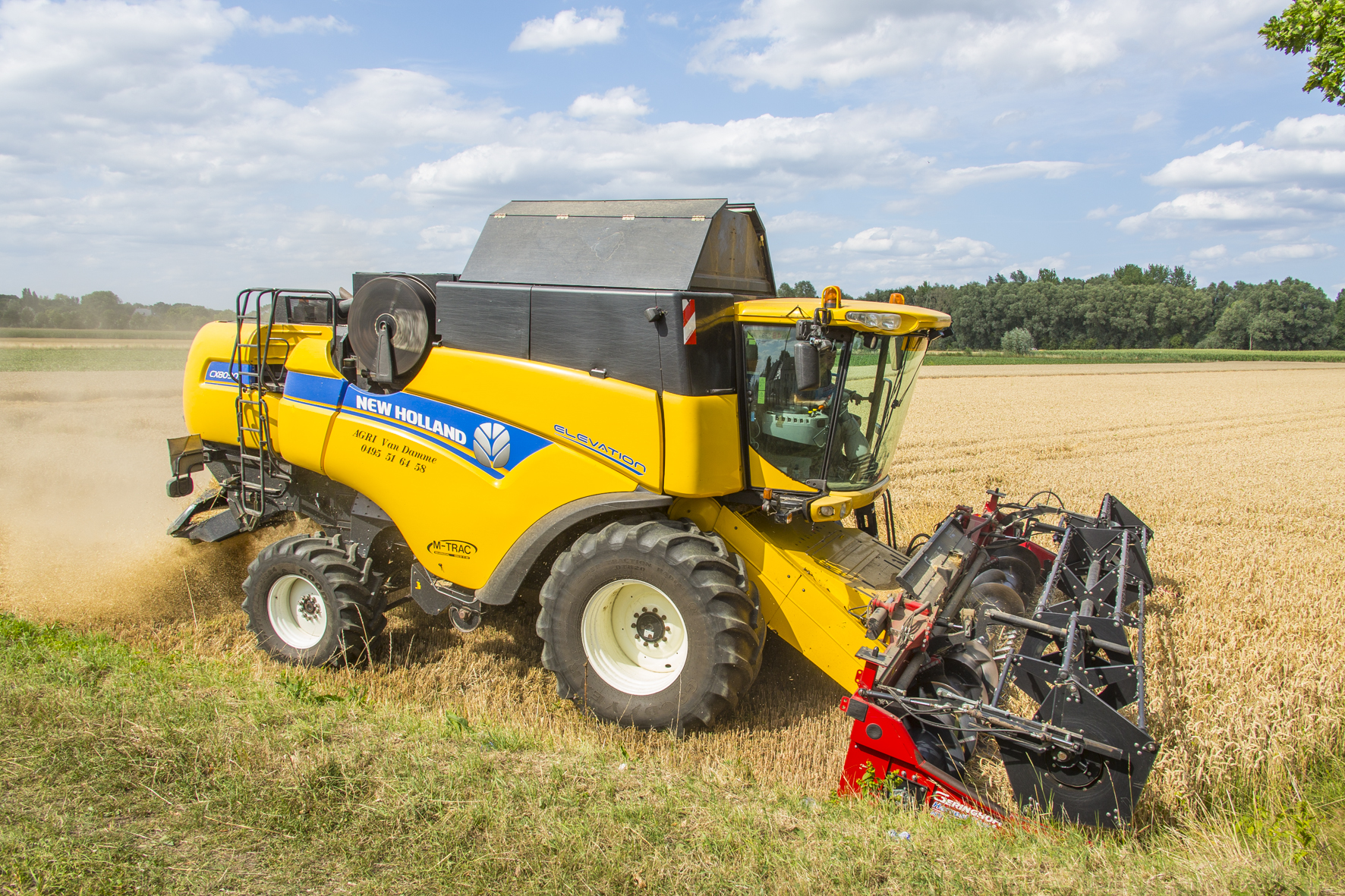 Bij Agri Van Damme zijn het hoogdagen in de zomer. Dorsen doen ze met één Lexion en twee NH CX’en. Strohandel maakt dat Van Damme meer dan twee keer zo veel perst dan oogst. Dat gebeurt met één Claas en drie NH-grootpakkenpersen.