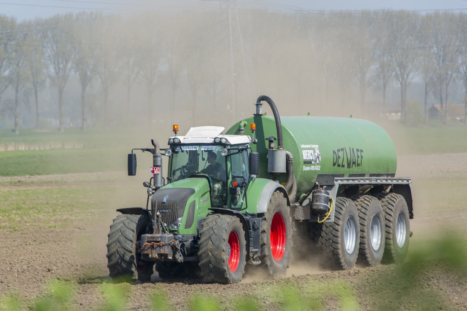 Frederik Mercy (30) en Nathalie De Roo (28) zijn een geoliede machine die meer dan hun handen vol hebben met de dagelijkse leiding van het bedrijf. Ze zetten negentien werknemers aan het werk die aangevuld worden met seizoenarbeiders op piekmomenten. Aangezien ze vlakbij de Nederlandse grens zitten, zijn ze regelmatig actief bij onze noorderburen. In het grondverzet meer dan in de landbouw.De jonge onderneming kleurt het Meetjesland. Zowel de gronddumpers, aaltonnen en silagewagens kregen een Fendt-jasje wat mooi matcht bij de trekkers. Die zijn trouwens allemaal voorzien van een ‘Mercy’-zonneband. De vrachtwagens leveren ze in het rood.