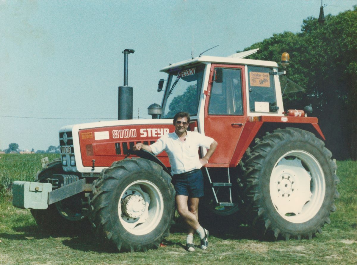 Marc Decock poseert trots voor hun eerste Steyr: een 8100 zescilinder.