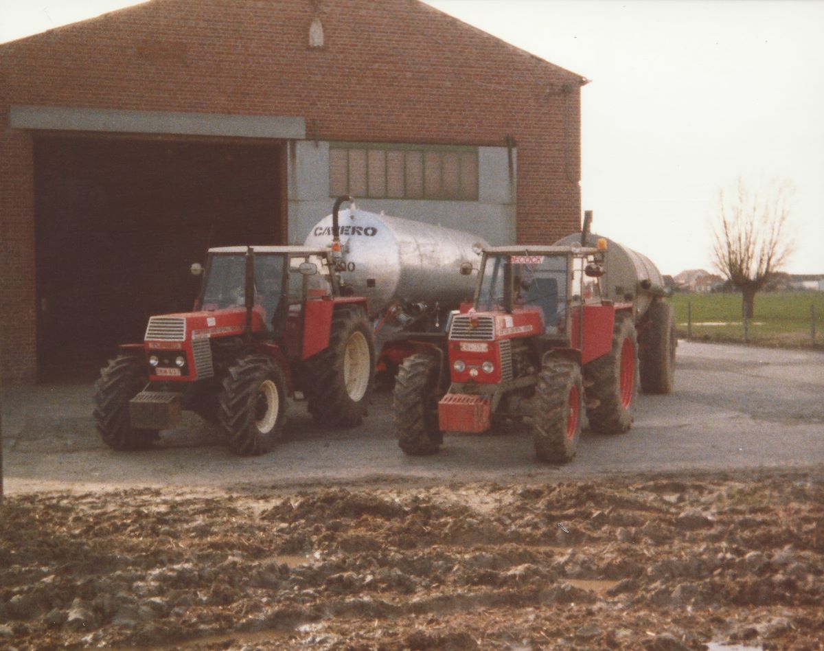 De Zetor Master 16045 en de Zetor Chrystal 12045 in 1985 beiden voor een Cavero-drijfmesttank.