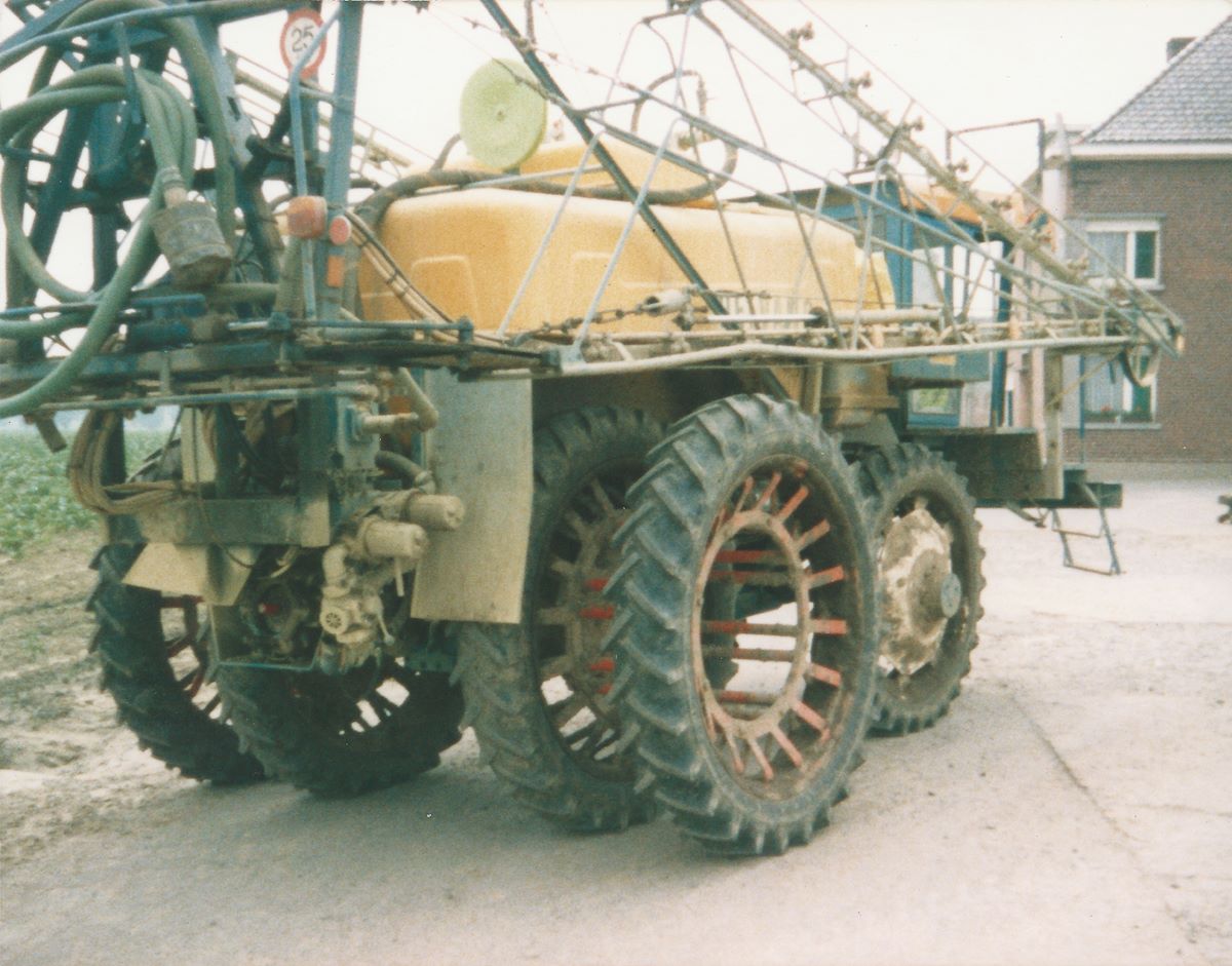 Delvano-veldspuit op dubbele wielen tijdens een natte periode in 1987.