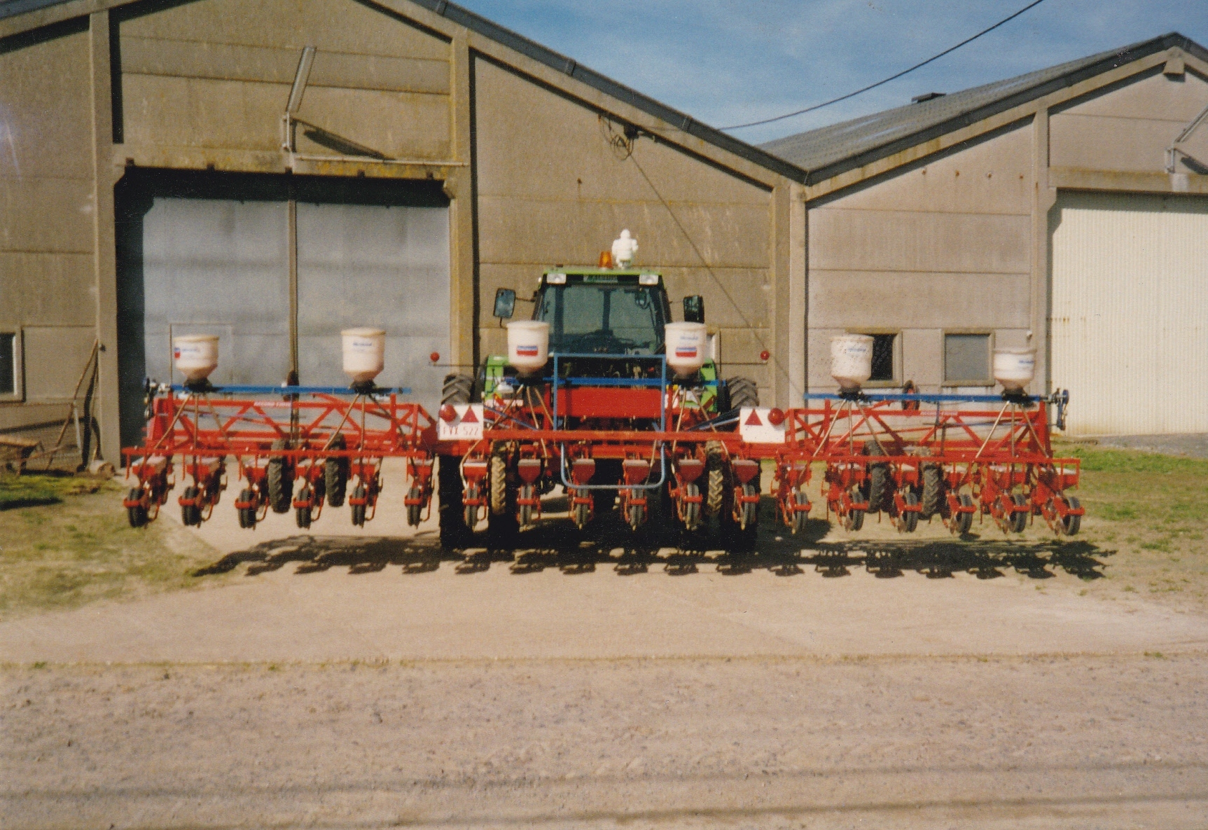 De indrukwekkende 18-rij Accord Monopill zaaimachine in 1989.