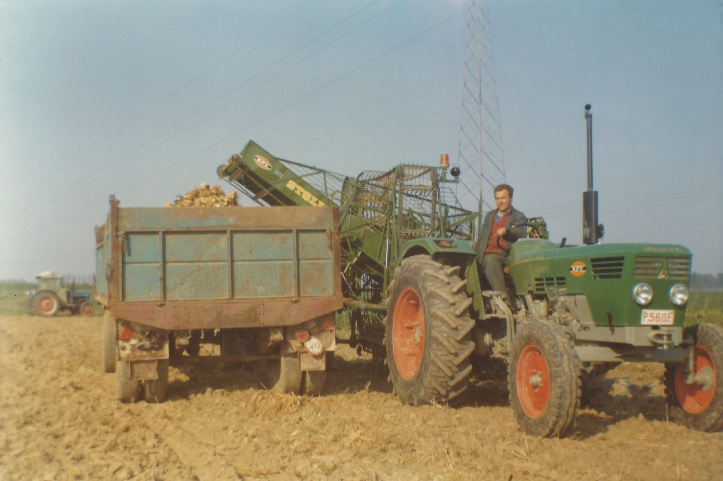 Bieten rooien in 1972 met een Deutz 7006 en een Stoll bietenrooier.