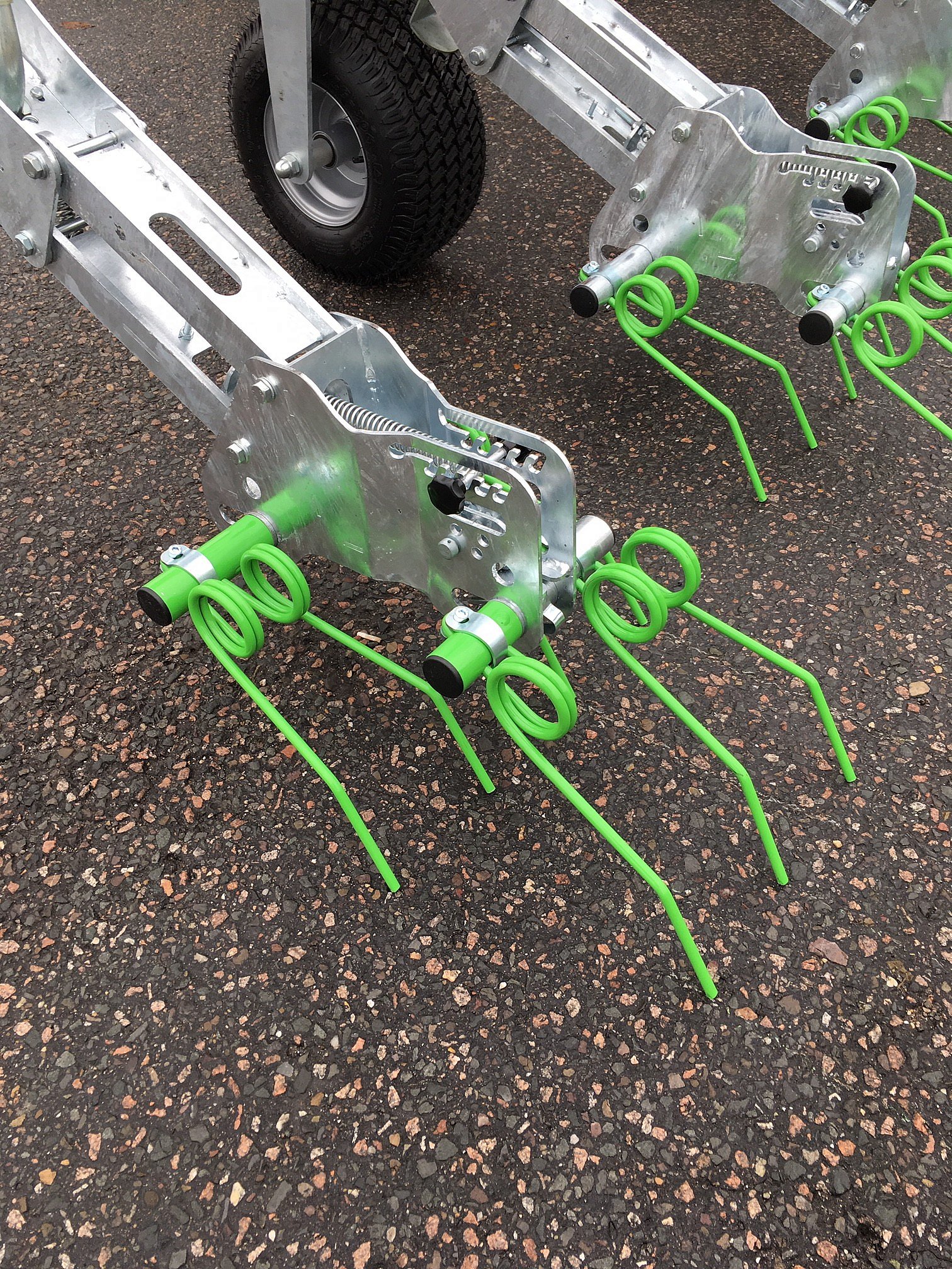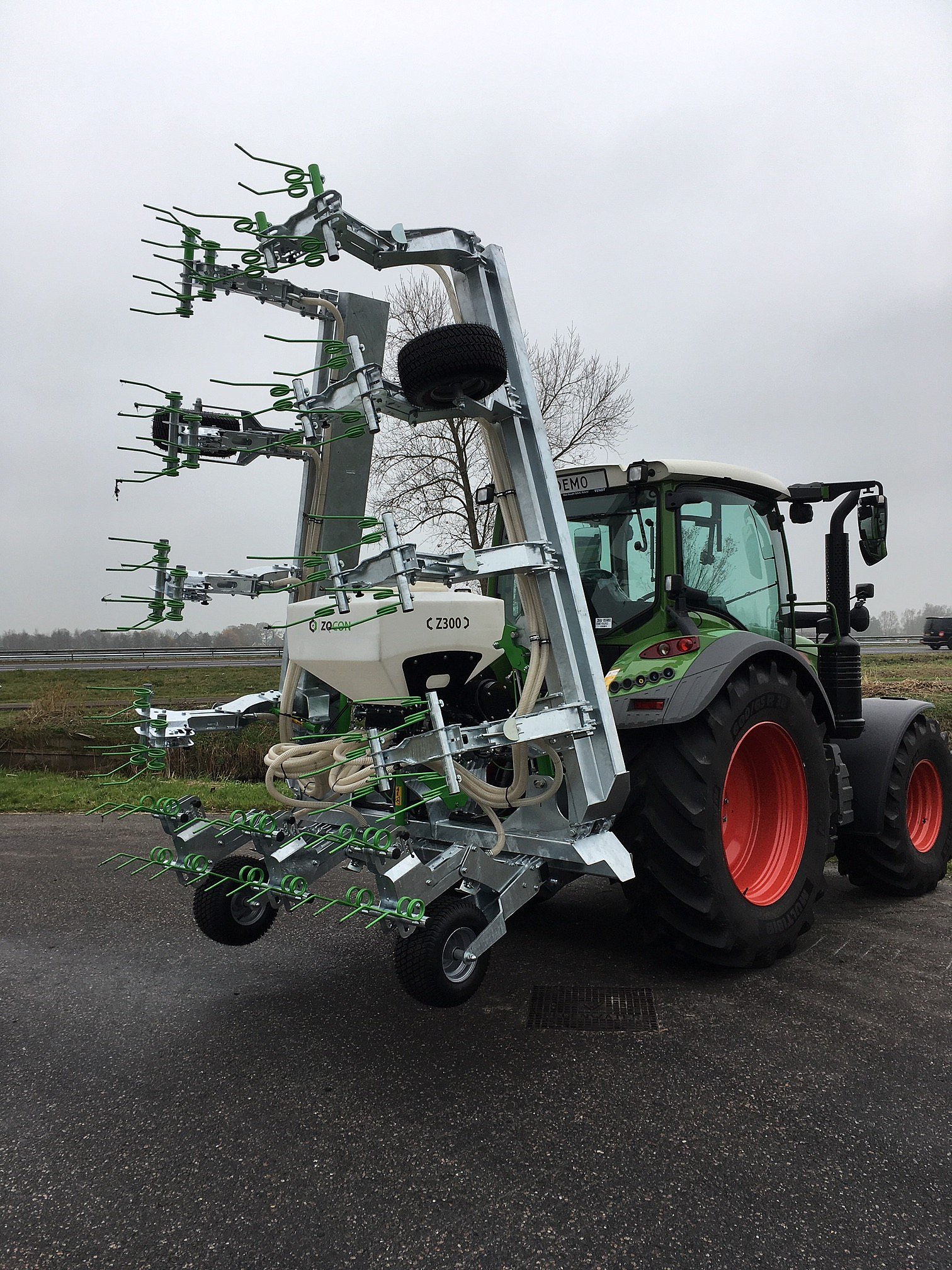 De machine is ontworpen in nauw overleg met een aantal Nederlandse loonwerkers, met als belangrijkste eisen snel, breed en goedkoop. De machine heeft een hoog frame, met een bodemvrijheid van 85 centimeter. De onkruidbestrijding en het inwerken van het (gras)zaad gebeurt door middel van 10 millimeter dikke wiedegtanden, de zaaimachine is een Zocon Z300. De veerdruk op de tandelementen is in 5 posities instelbaar. Bij het draaien op de kopakker heffen de elementen hoog boven het gewas uit, zodat kan gedraaid worden zonder schade aan de staande maïs.